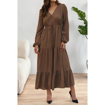 This women’s shirt dress features a classic lapel design with long sleeves and a relaxed fit. The ruffle details add a touch of femininity, while the loose silhouette ensures comfort and ease of movement. Versatile and chic, this dress can be styled casually or dressed up for more polished looks. Material: Polyester Weight About :400g