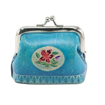 Rich indigo blue made from natural plant dyes is the defining color of genuine batik. Indigenous ethnic groups living in the mountainous region that borders China & Vietnam create these beautiful purses. Dimensions: 3.7" x 3.8"