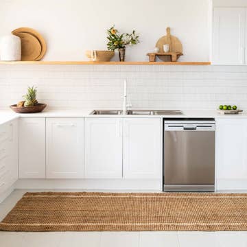 This Blue Scalloped Jute Rug is kid and pet friendly, making it perfect for high-traffic areas such as your living room, dining room, kitchen, office, and entryway. * Material: Natural Hemp (Jute), Braided on traditional handlooms from India. * Reversible * Suitable for high-traffic areas * Care: Blot spills immediately with a clean, absorbent white cloth. For additional information, please review Maia Homes' guide on how to care for your jute rug. * Origin: Made in India. * Note: All rug sizes are approximate. Due to the difference in monitor colors, some rug colors may vary slightly.