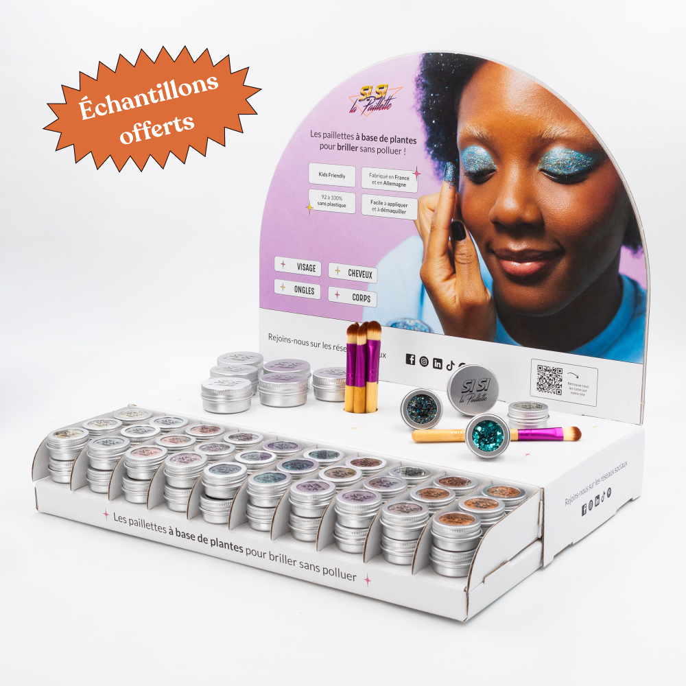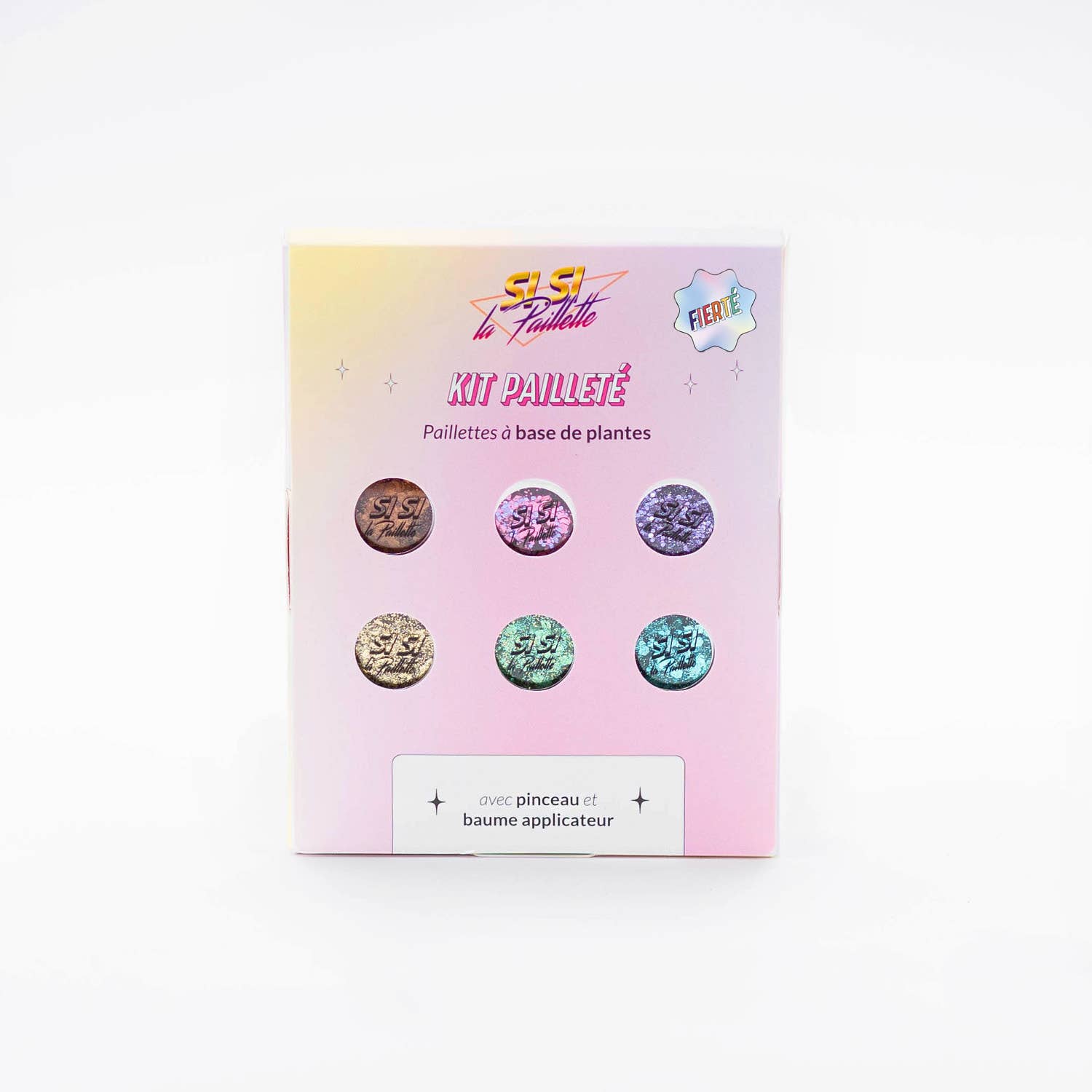 Here is our special Pride Month biodegradable glitter box! And for each kit sold, we donate 1€ to the Stop Homophobia association 🏳️🌈 It contains everything you need to adorn yourself with a glittery rainbow: 6 jars of glitter, a shea balm and a brush