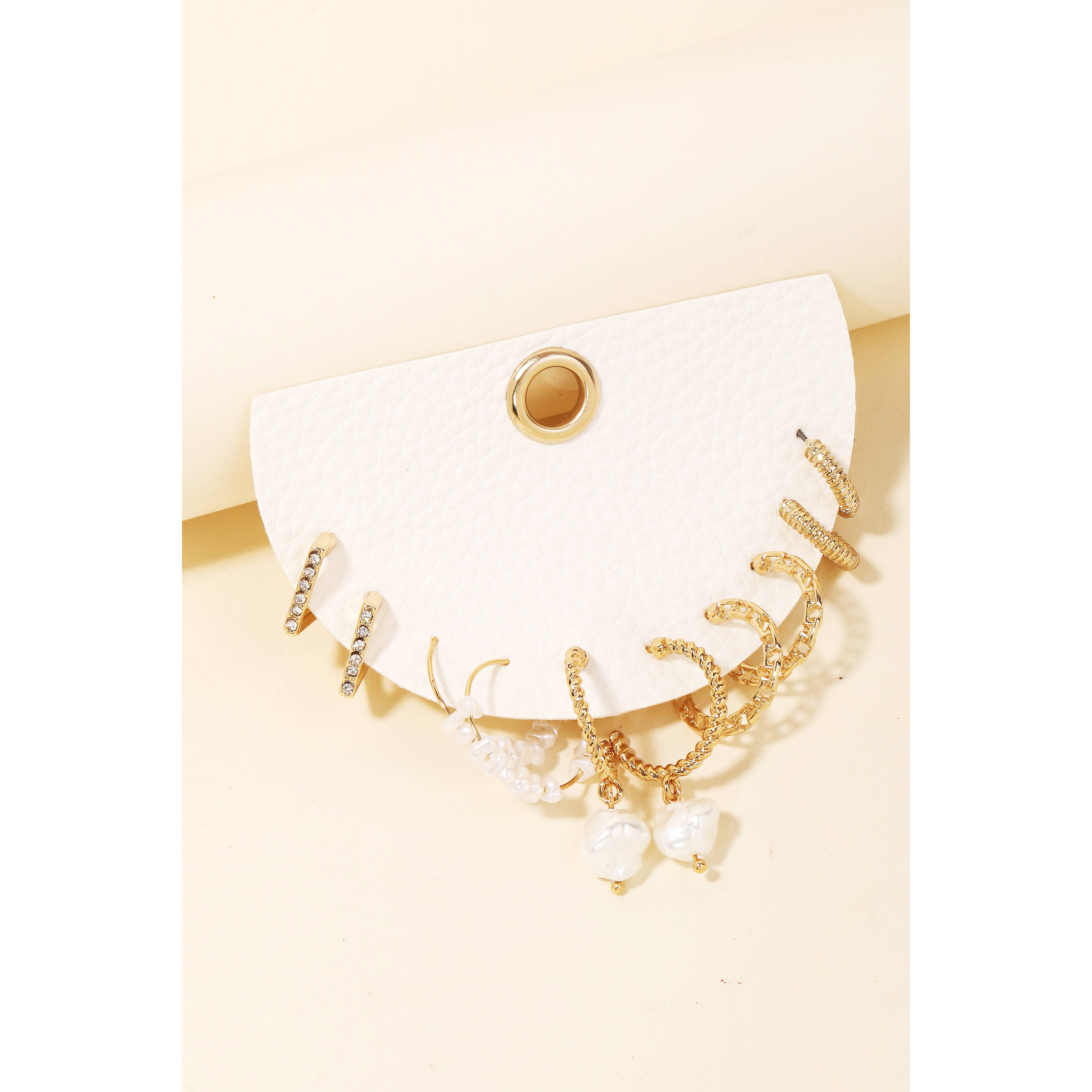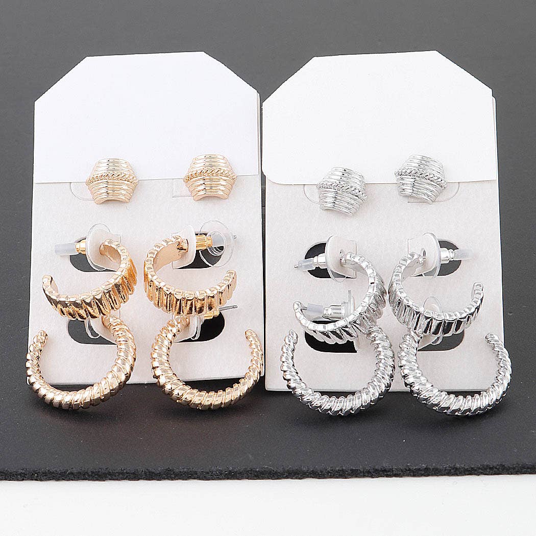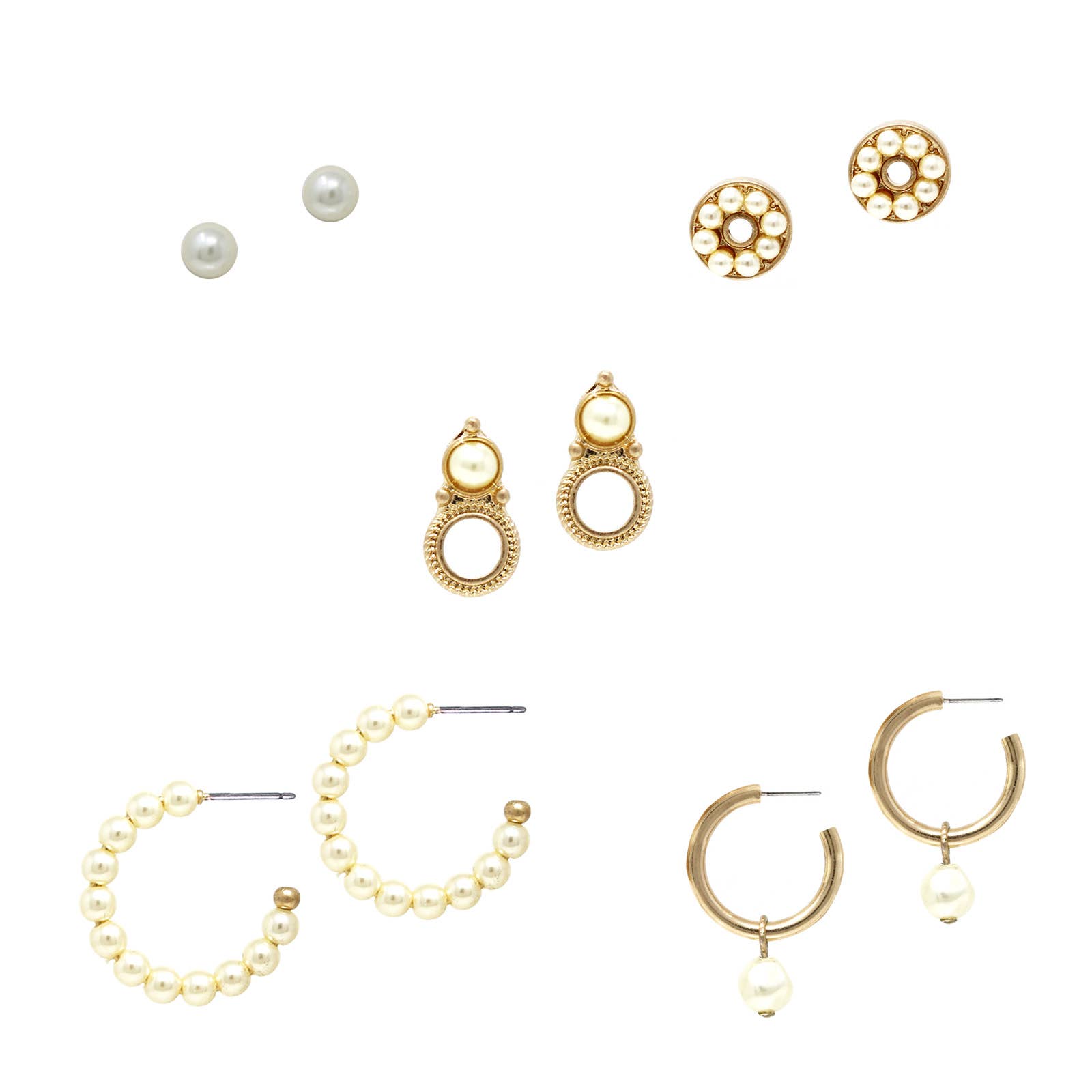 Gold Pearl Hoop Stud Trio Earrings, this trio features meticulously crafted earrings, combining the classic elegance of pearls with contemporary hoop and stud designs. Trio offers a variety of styles, allowing you to effortlessly transition from day to night. Product details: length: .75", .5", .35" width: .75", .5", .35" earring back: post metal finish: Gold Plating product: Lead & Nickel Compliant anti-tarnish: Double E-coating