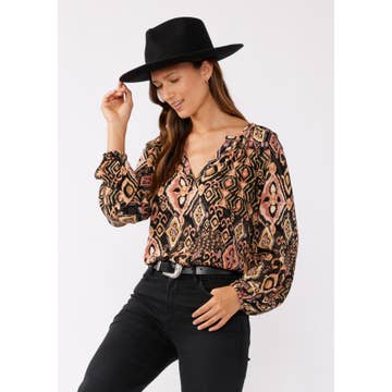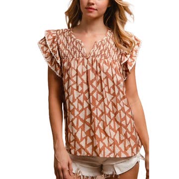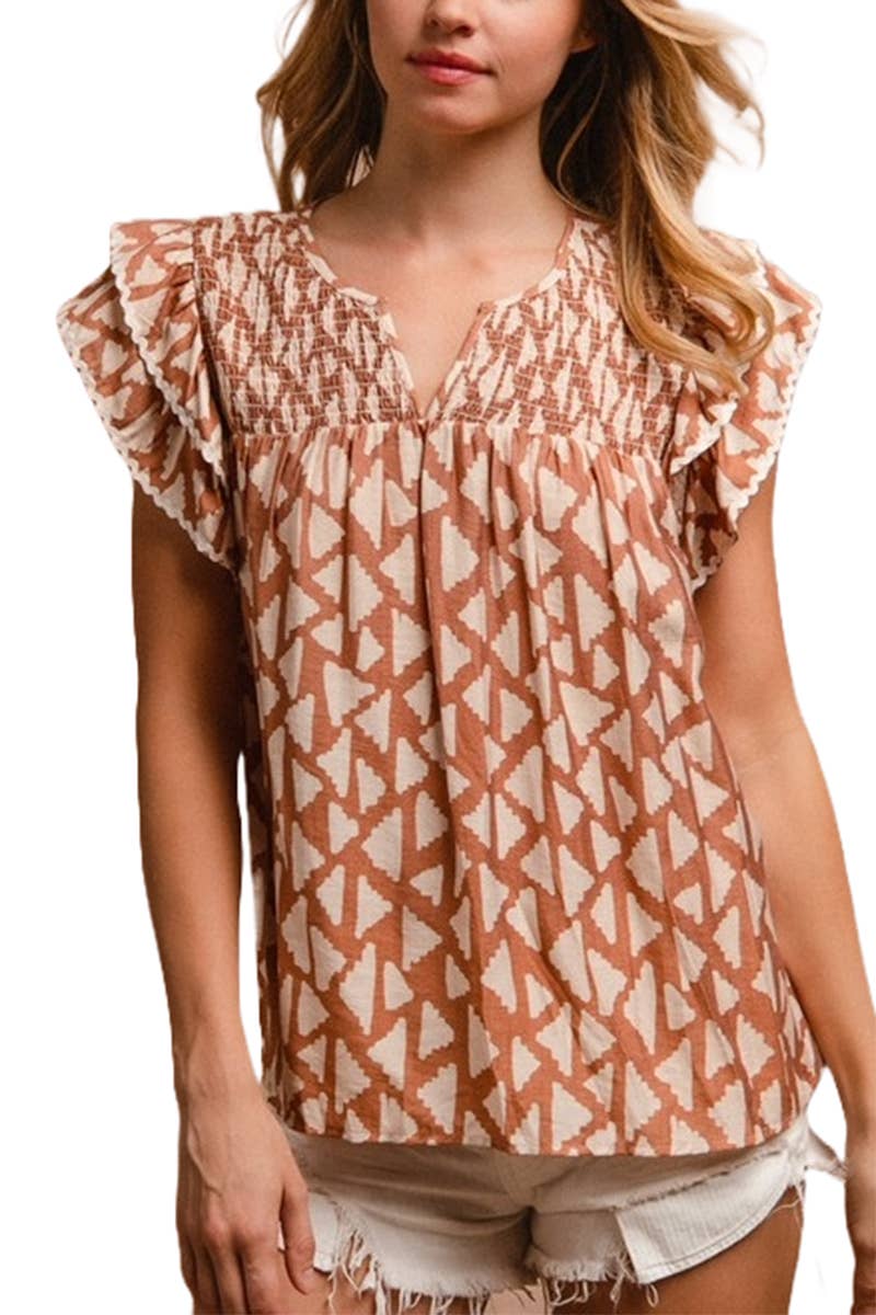 LDC Boho Floral Frilled Button Neck Ruffle Blouse