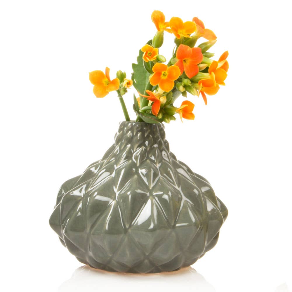 Handmade Indigo Ocean Blue Barnacle Sea Urchin Vase – 8" Wide x 5" Tall Bring coastal artistry into your home with this uniquely sculpted Thai ceramic vase inspired by sea urchins and ocean barnacles. Handcrafted and hand-glazed by skilled artisans in Thailand, this one-of-a-kind piece features raised barnacle details, oceanic textures, and a soft blend of ivory blue, aqua blue, and sandy beige tones. The organic, rounded shape and wavy top opening make it a stunning standalone statement or a perfect home for dried arrangements. Key Features: Handmade ceramic vase from Thailand 8" wide x5" tall (approximate) Sea-inspired design with barnacle and urchin textures Glazed in natural ocean blue, soft blue, and subtle earth tones Each piece is one of a kind due to hand-applied finishes Ideal for coastal, nautical, or organic modern interiors Perfect for console tables, shelves, or as a centerpiece, this vase celebrates ocean beauty with artisanal craftsmanship.