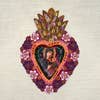 Extra Large hand painted metal heart milagro from Peru. Sold individually, with assorted saints and painting. Every one is unique. Hand made in Lima.