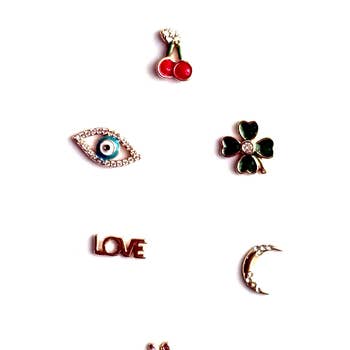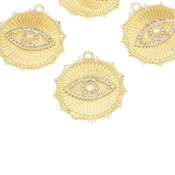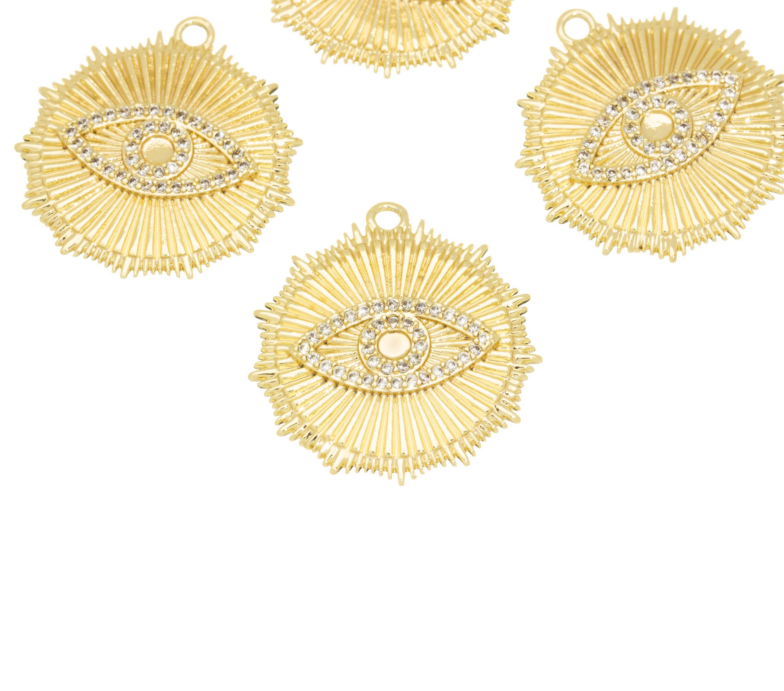 SKU: 10x Mix Gold Evil Eye Made in United States Color: Multi-Colored and Yellow Gold Material: Brass and Gold Plated Occasion: Birthday and Christmas Stone Type: Zircon Style: Fashion-Forward and Minimalist Theme: Sun, Moon & Stars Product Language: English