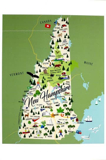 Choose from multiple different New Hampshire license plate stickers with NH cities, sayings, & outdoor destinations. If you're looking for a custom sticker with your city, send us a message and we'll be happy to add it to the list. Concord Derry Hampton Beach Leaf Peeper Live Free Manchester Mt Washington Nashua Rochester New Hampshire stickers, 4" wide laptop decal size. Durable die-cut vinyl decal with a matte UV-resistant coating. Waterproof & weatherproof for indoor & outdoor use. Made in USA. Whether you're hiking the Appalachian Trail, leaf peeping in the White Mountains, or sampling maple syrup, New Hampshire has something for everyone. Celebrate the Granite State with a cute sticker featuring the iconic Old Man of the Mountain NH license plate. Perfect waterproof sticker for Hydroflask water bottle, Stanley thermos, drink tumbler, or Yeti cooler. Or, place this New England bumper sticker on your car, truck, RV, or trailer.