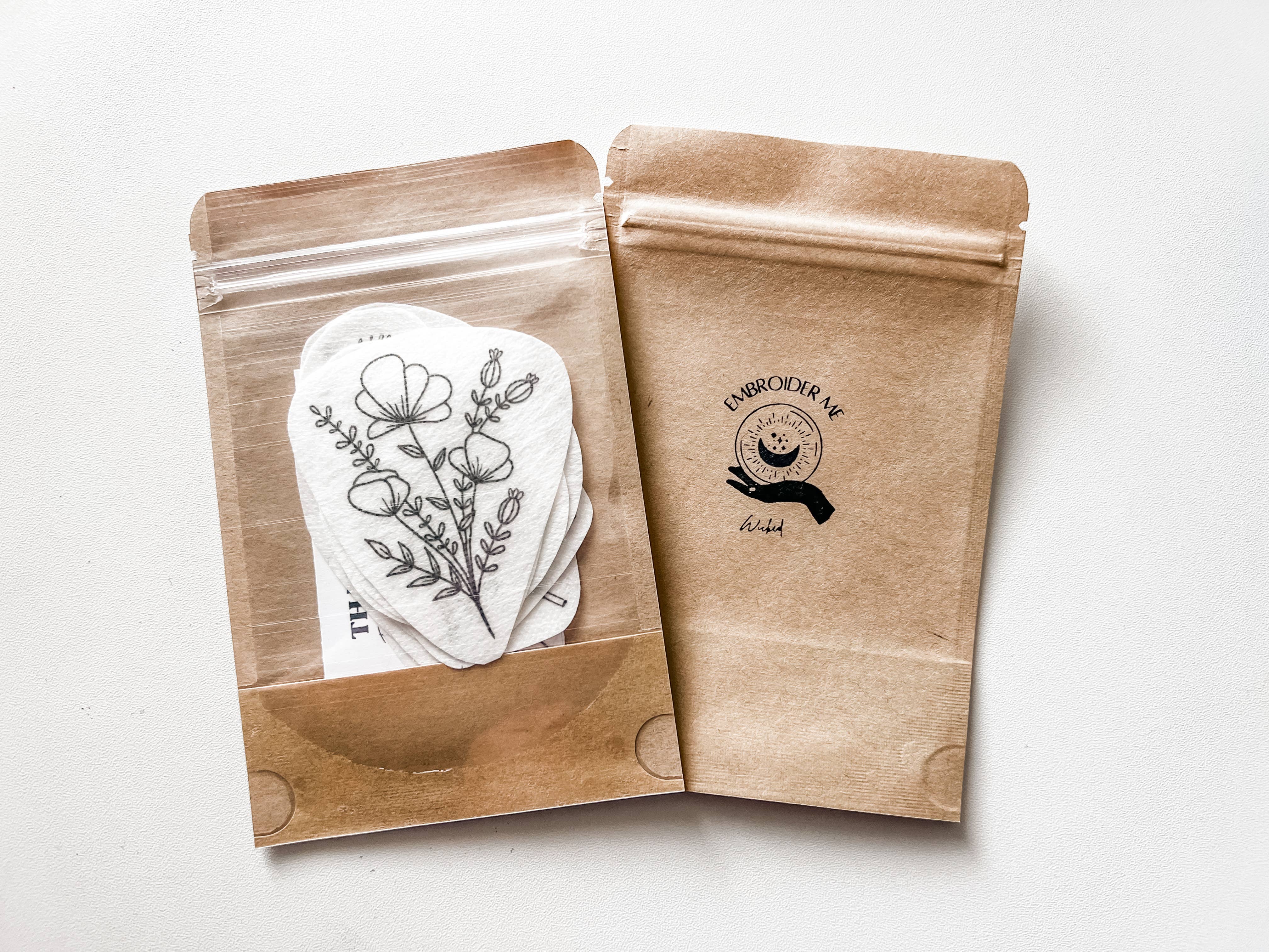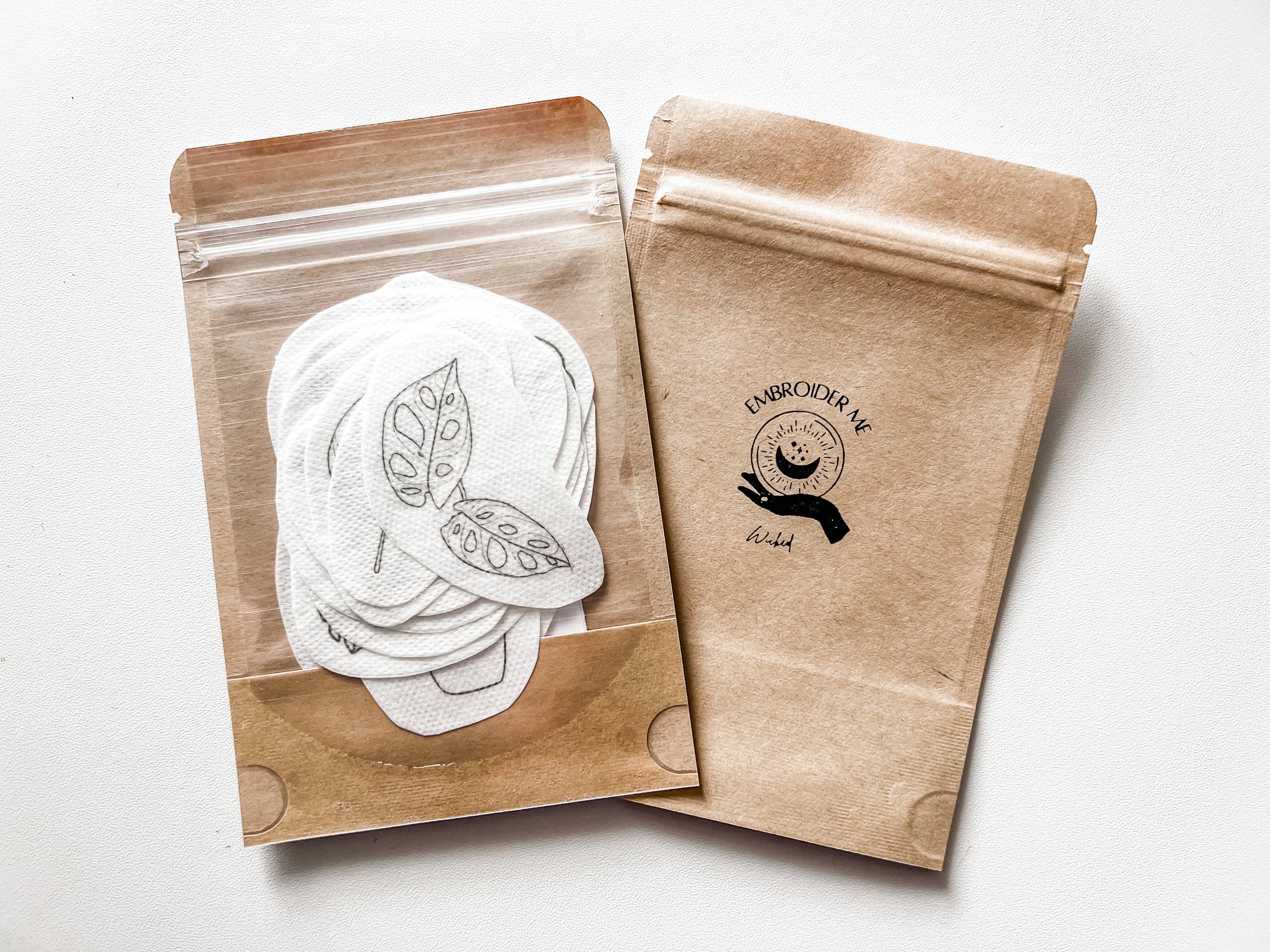 Ready to transfer embroidery designs! These peel and stick patterns make your embroidery project super easy. The designs work on clothing, canvas bags, embroidery hoop art, or pretty much anything you can stitch on. This stick & stitch pack includes 11 ready to use designs. When you are ready to start, peel off the backing, stick on to your desired fabric, complete your embroidery, and wash the pattern away with WARM water. *Note* No step by step guide, or color suggestion sheets are included as these are meant to be blank designs, and can be done in any variety of color selections. Size of biggest design is pictured in the photos. Happy Crafting! If you have any questions, please feel free to message me. I am always happy to help in any way I can!