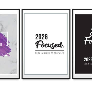 This calendar is themed with splatters and gold line work. Gold is hand screen printed on top of high quality art print pages. Offered in three sizes - 5x7, 8.5x11, and 11x17. The 5x7 comes with a wooden block stand, and the 8.5x11 and 11x17 will come with a gold clip to bind and hang. These calendars cover an academic year from August 2024 through July 2025.