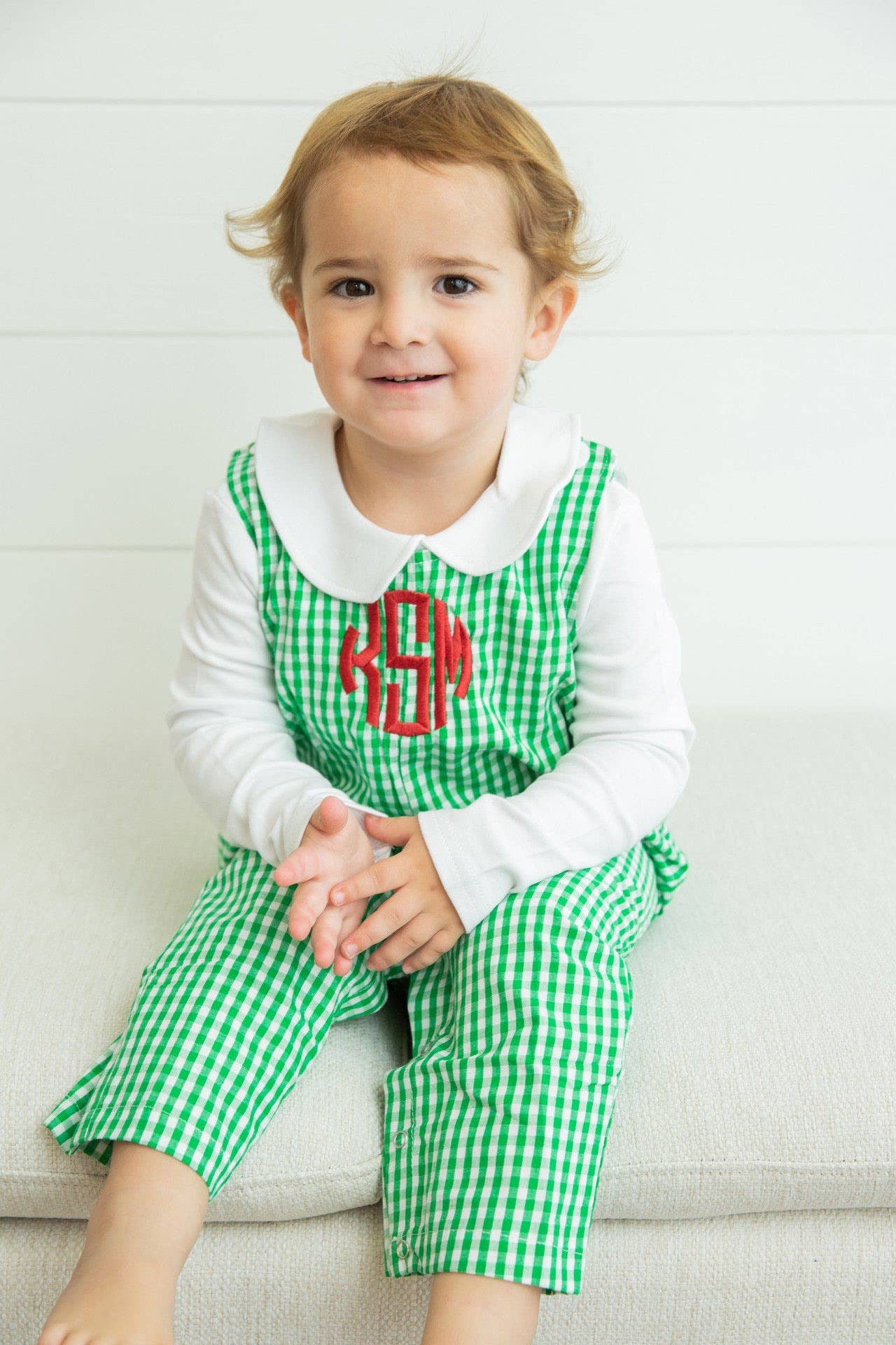 Longall Fully lined Snaps along the crotch Hidden zipper along side seam Buttons at shoulder strap 100 percent cotton - woven This long pant jonjon is super cute, and easy to dress up or dress down. It is perfect for embroidery or applique. It is fully lined and has button on the shoulder straps, and snaps along the crotch. Don't forget to get an LTC polo or peter pan collar to go under it. It is perfect for the holidays. Remember that we offer embroidery on all of our kids clothing and baby