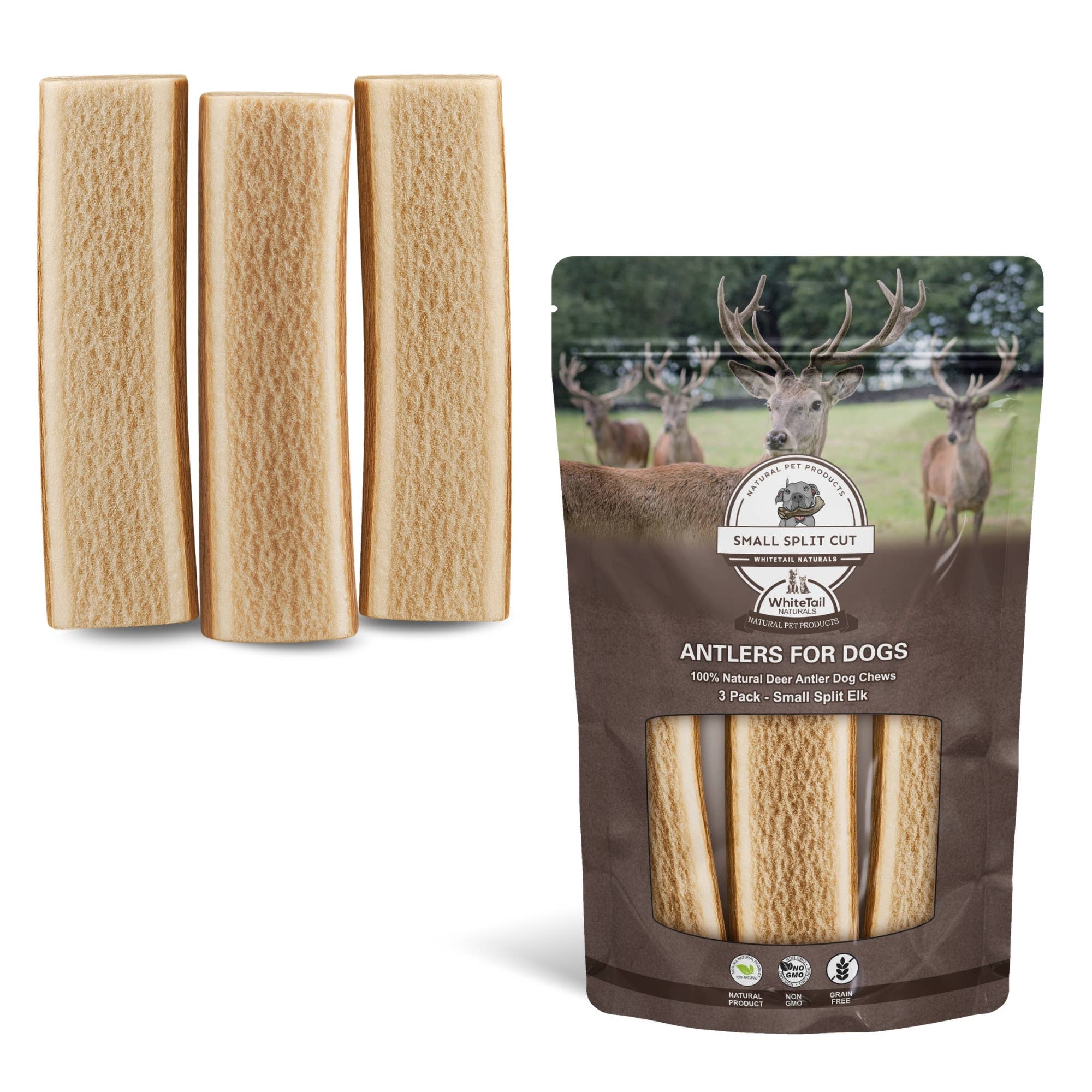 (SMALL) SPLIT Elk Antler Chew -Single or Multipack, Branded