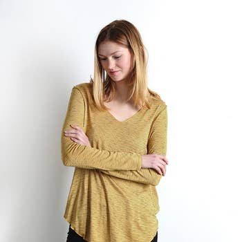 SKU: GFW611UIA15 - XS Made in United States Aesthetic: Casual Care Instructions: Machine wash Color: Gold and Yellow Fabric: 57% Poly, 38 Cotton, 5% Span Neckline: Boat neck Season: Fall/Winter Sleeve Length: Long Sleeve Product Language: English Weight: 453.59 g (1 lb) Dimensions: 30.5 x 25.4 x 2.5 cm (12 x 10 x 1 in)