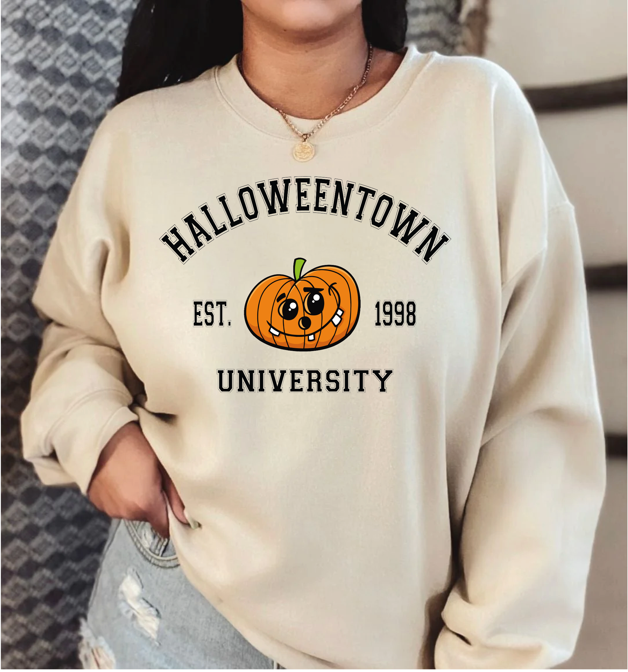 SKU: HALLOWEENTOWN-BLK-ORG-SM Made in United States Aesthetic: Casual Care Instructions: Machine wash Fit: Unisex Occasion: Everyday and Holiday Season: Fall/Winter Product Language: English Weight: 226.8 g (8 oz)