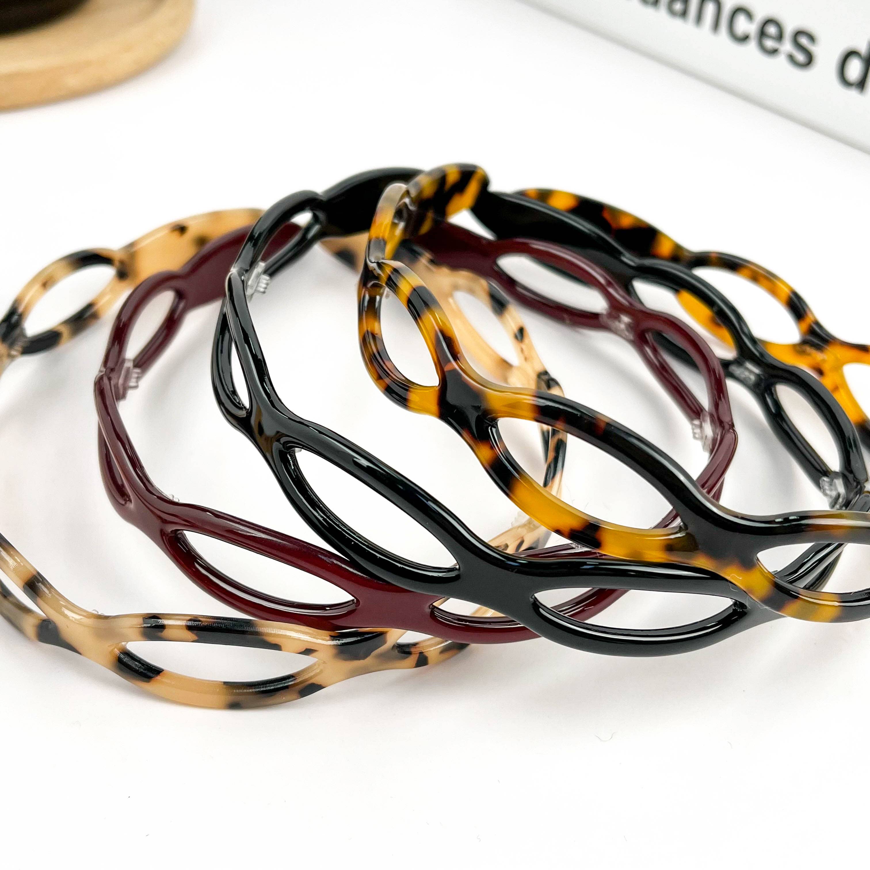 - Stylish and geometric chain pattern design headband perfect for everyday wear. - Comes in a convenient pack of 12 for stocking up or sharing with friends. - The lightweight plastic material makes it comfortable to wear for any occasion. 3 pieces per card