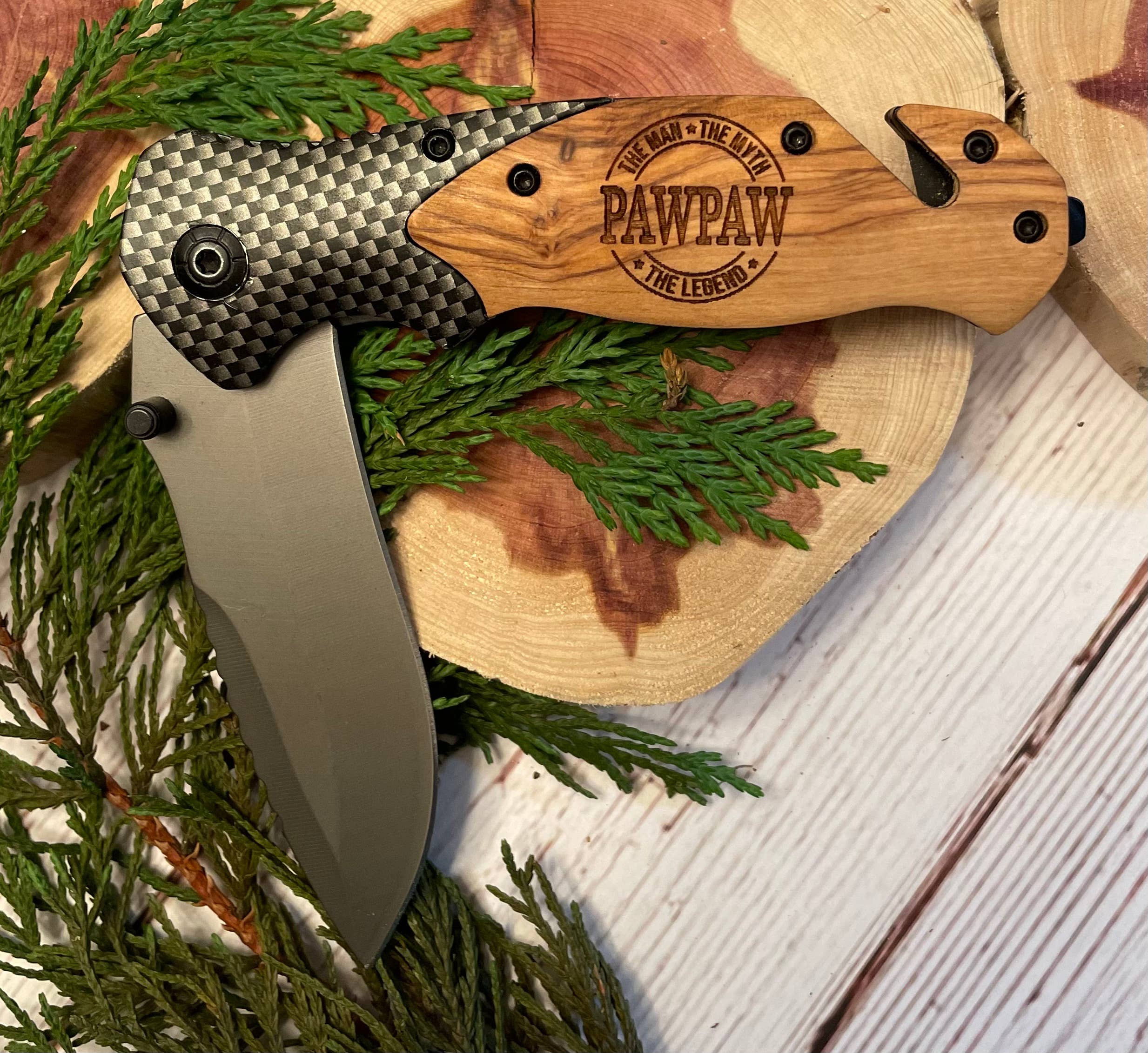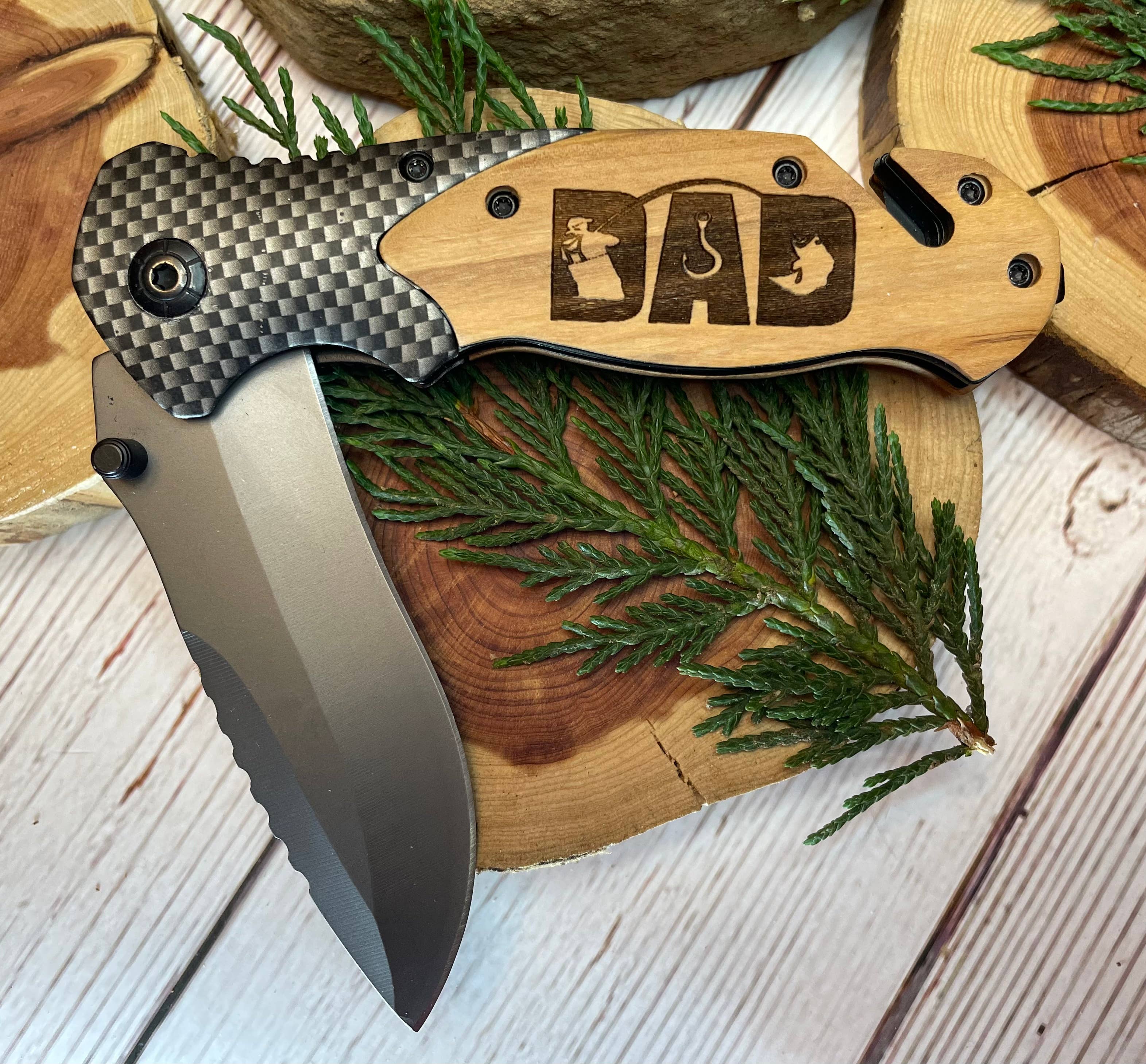 This Ruffed Grouse is great at camouflage with his colors blending perfectly into his natural environment. Length: 8” open, 4.75 closed Lock Blade 3.38”, 4.8 oz Belt clip, Seat belt cutter, Window breaker, stainless steel blade. Laser engraved folding utility knife with lock blade, great for any outdoor activity. The handles are made from natural olive wood with unique grain patterns, making them all a one of a kind. Each knife comes in a plastic sleeve and gift box.