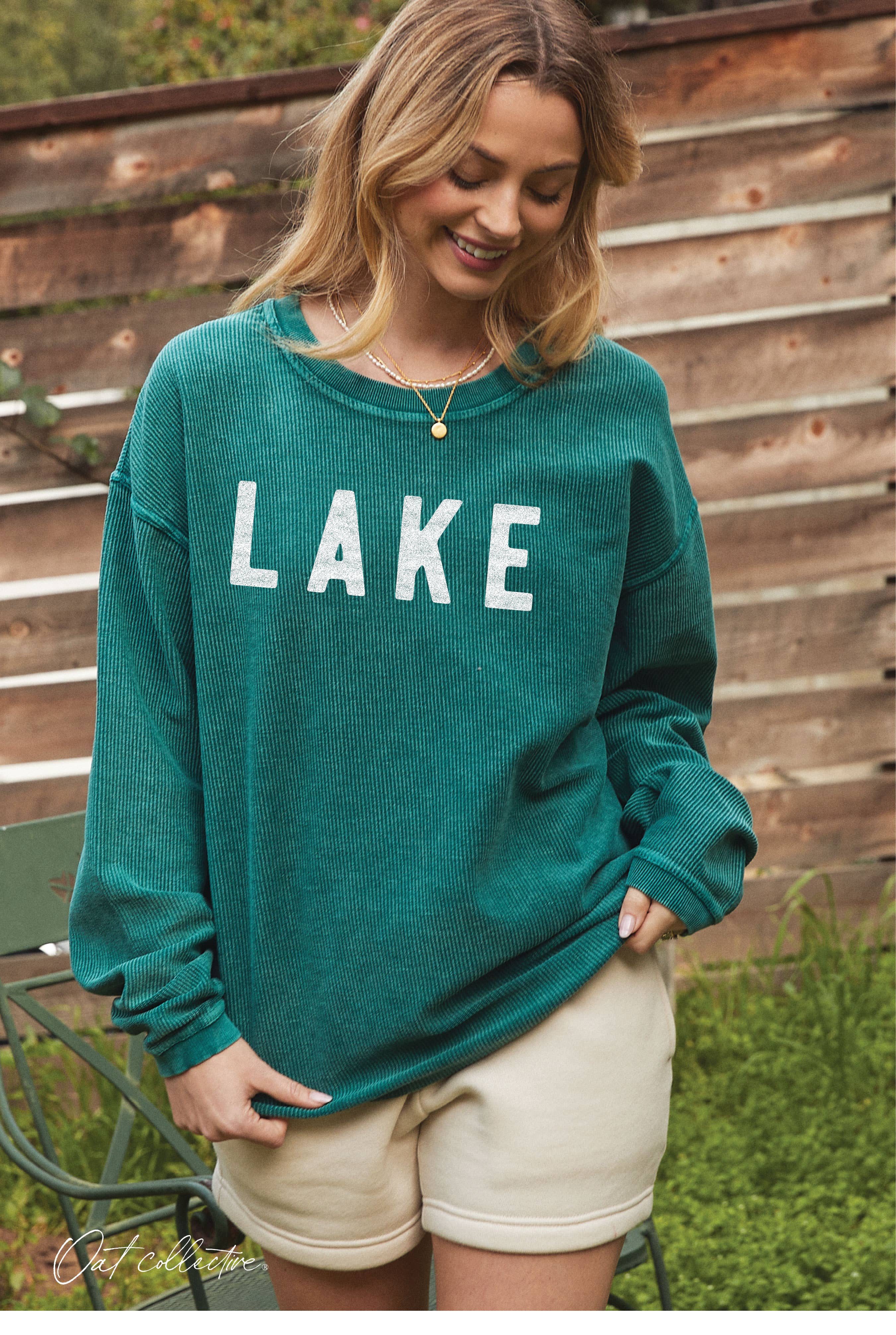 Throw on for a dinner at the lake or a bonfire with your girlfriends! Cozy, warm and cute. Features a raw edge and full screen print front. 55% cotton, 45% polyester Relaxed Fit Size Chart