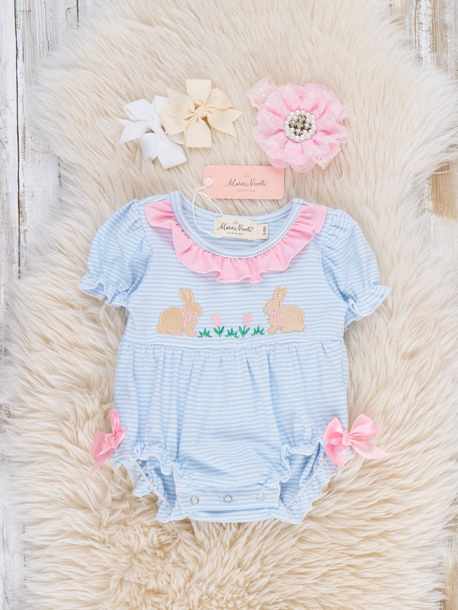 Bunny Floral Embroidered Ruffle Bubble
