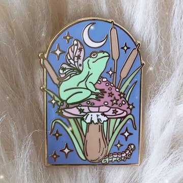 Hard enamel pin with rubber backing and polished gold back 1.75 inches tall Dapper, wise and ready to cast a spell, this little guy will bring a dash of magic to your jacket, bag or spellbook.