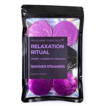 Relax Shower Steamers add relaxing aromatherapy to your shower time! Scented with lavender essential oil and a lavender blend fragrance oil. The addition of menthol aids in carrying the aroma throughout the shower. Our shower steamers come in packs of 2. Each steamer weighs approx 2oz. Net Wt. 4oz *Vegan and Cruelty-Free Ingredients *Never tested on animals. *Made in small batches. Color and appearance may vary slightly between batches. Instructions for use: Place on shower floor under running water. Allow steam from shower to carry the aroma. Adjust the amount of scent and dissolve time by moving the steamer into and out of the running water.