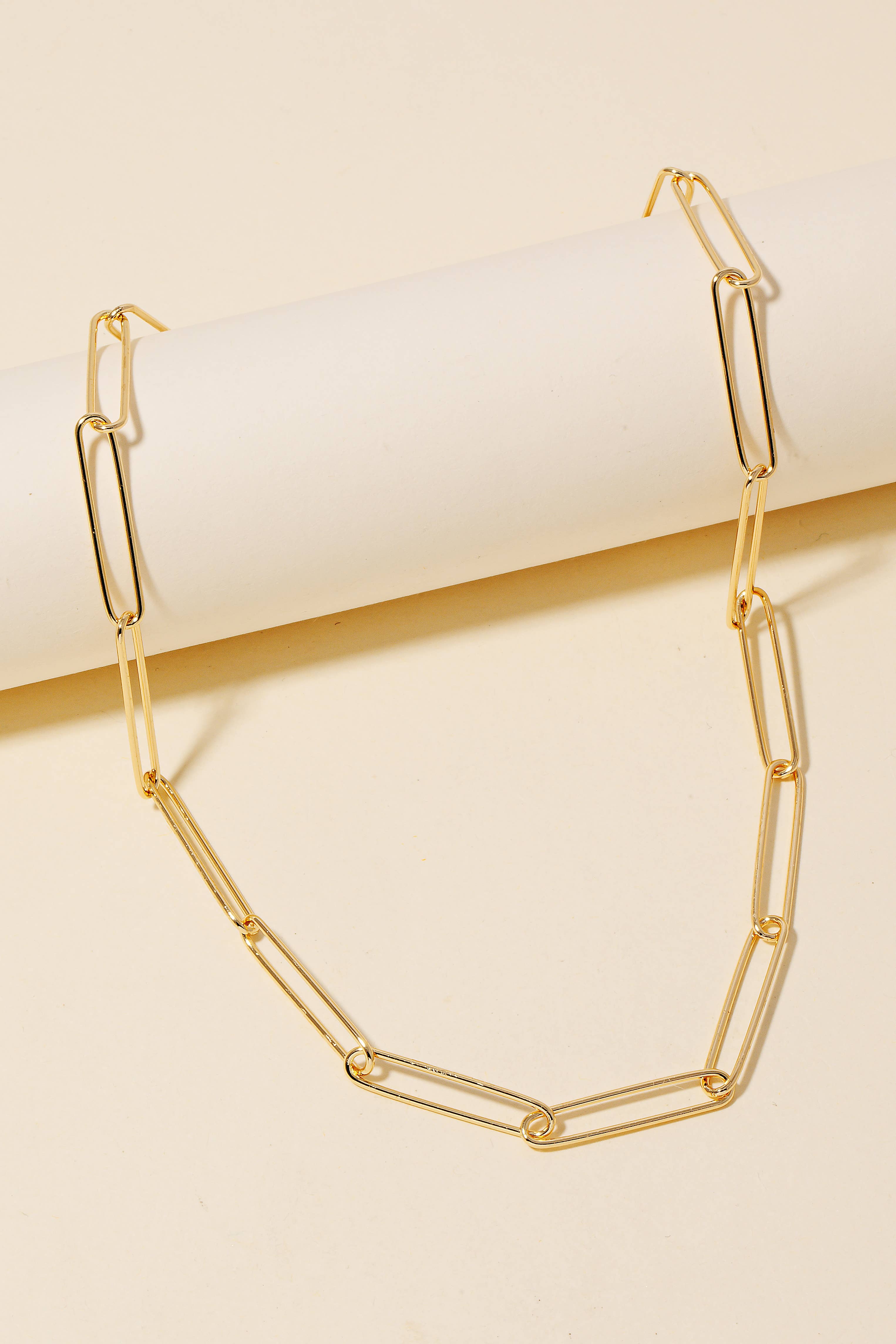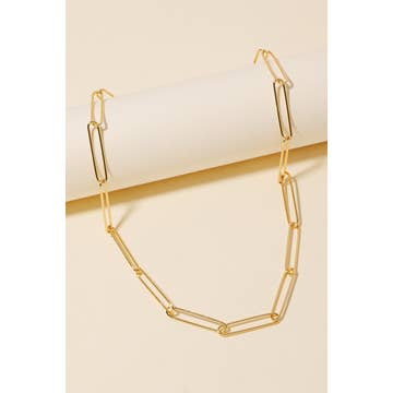 Big sister to our Sofia chain, this beauty is a larger paper clip chain style @ a 5mm width. She's a statement ready for the perfect layer. Size: 18" - Adjustable by clasping other paper clip links. Material: 18/30 gold-filled Link size: 17mm x 5mm