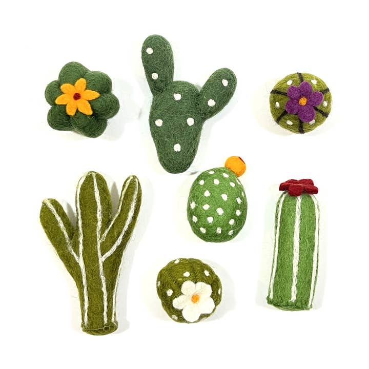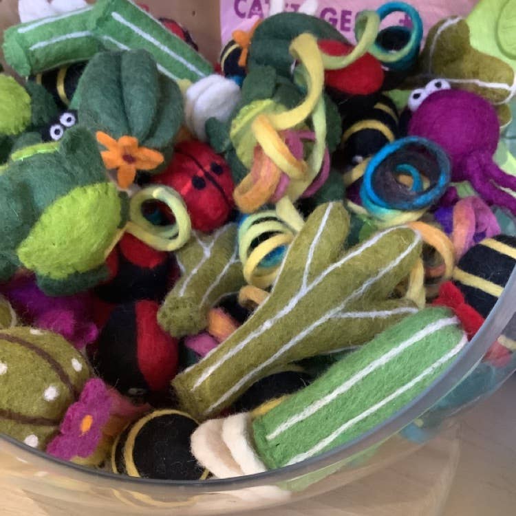 Wool Pet Toy, Counter Display, Succulents, 60 Asst. Toys: Assorted Cactus We set the standard for wool pet beds and toys made in Nepal. We designed and created the first wool pet caves made in Nepal, and are the largest producer of them in the country. Lanolin has a mild effect similar to catnip and for many cats, all-natural wool toys are their favorite. The rough edges of wool fibers help to clean plaque off your cat’s teeth and keep claws clean while they play. For us, it’s more than just words; we are an ethical business you can trust. As members of the Fair Trade Federation and Pet Sustainability Coalition, we complete a thorough vetting of our labor and environmental practices every year. Our blend of Himalayan and New Zealand wools is rich in lanolin, which naturally attracts pets and is good for their health. We use safe, non-toxic dyes and there are no synthetic microfibers that may be harmful to your pet if they are ingested.