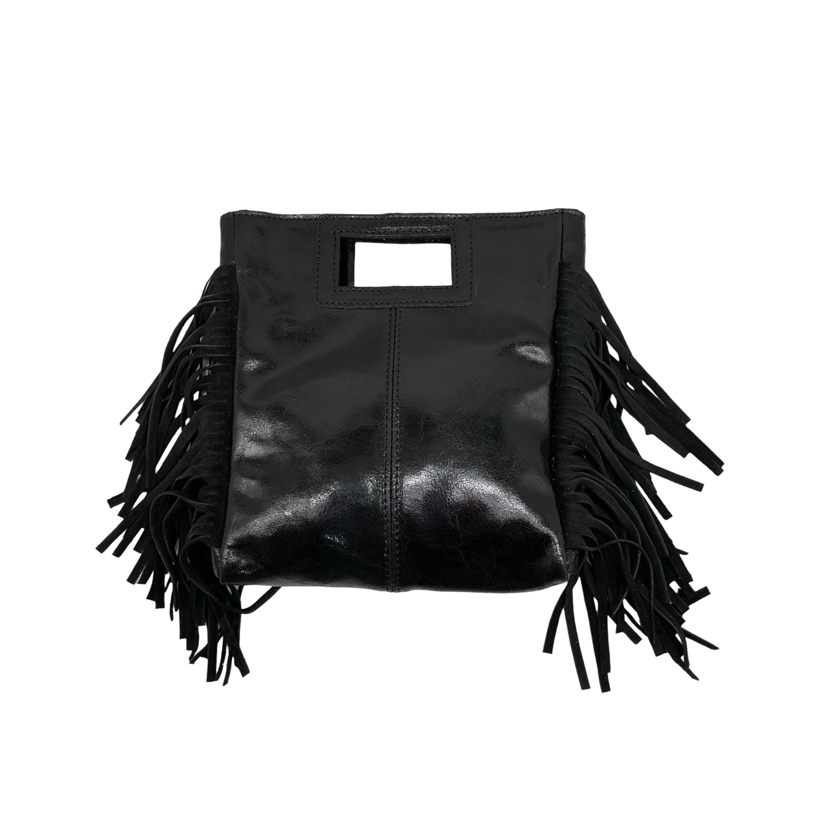 LARGE BLACK 39CM SEED LEATHER FANNY BAG