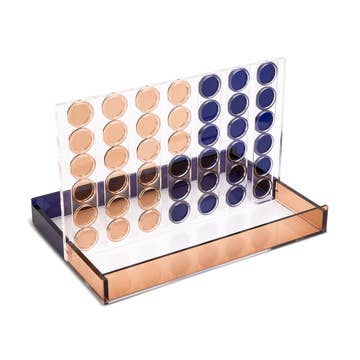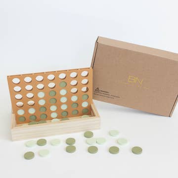 A classic game with a modern touch! This wooden four in a row game is great for any outing, travel or a cozy day at home! It's compact and the perfect size to double as coffee table decor. Adults as well as kids will love this addition to any living or guest room and the neutral colors allow the game to blend into many different decor styles. Linen bag included to store all game pieces.