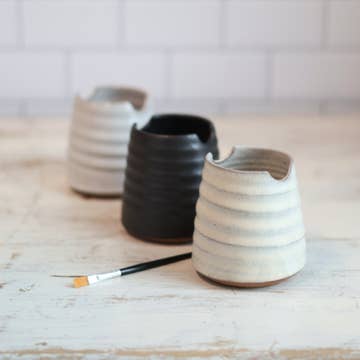 This item is handmade to order. Processing time takes up to 8 weeks. This handmade ceramic travel-sized paint palette is perfect for mixing color and is easy to clean! It is also a beautiful accessory for your work in progress photos and a must-have addition to your painting desk or art studio. • Measures 5.5"L x 3.25"W x 0.25"H • 4 paint wells • Brush rest indent • Hand molded for an organic look • Stoneware clay • Warm off-white matte glaze with dark speckles