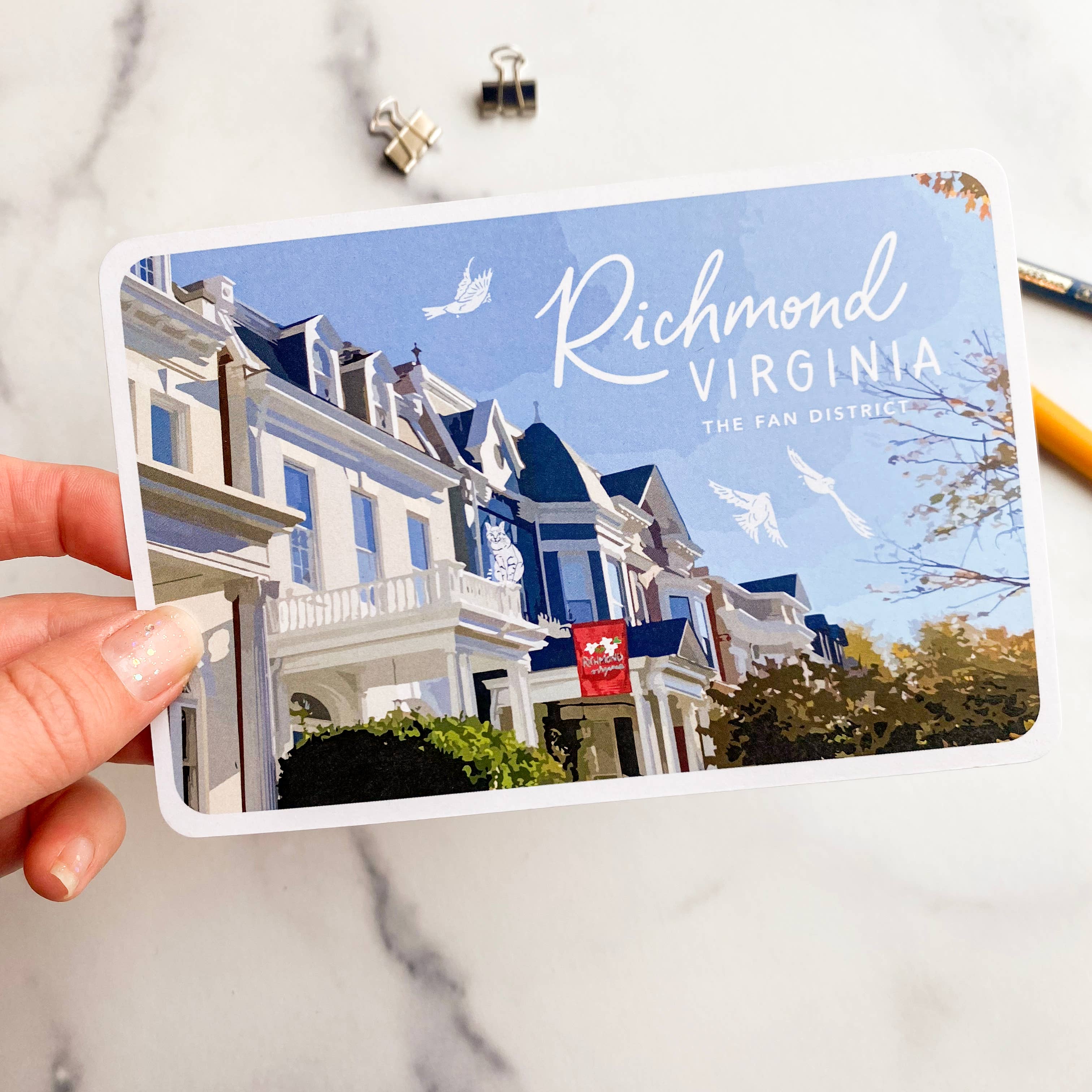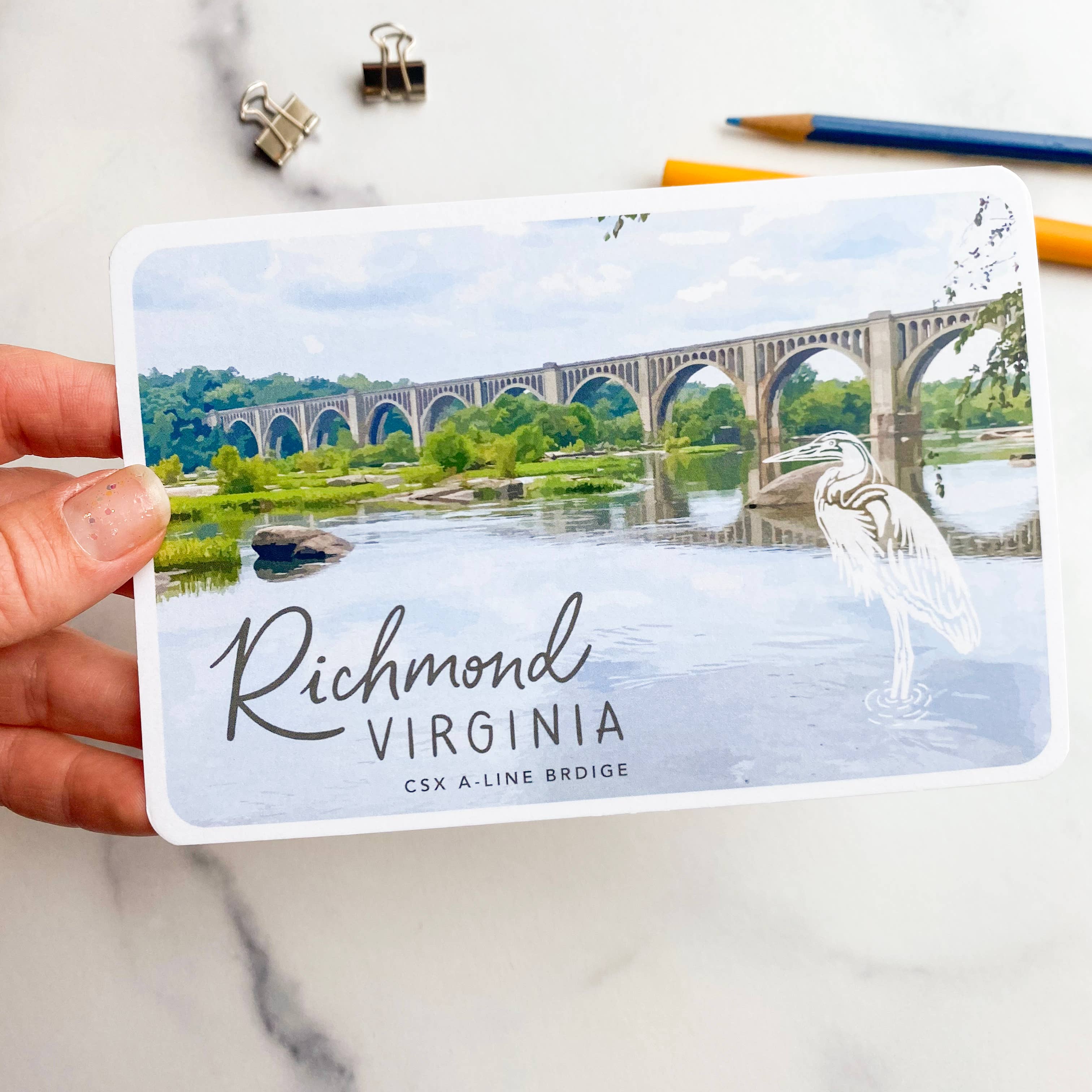 Postcard // Richmond, Virginia - The James River Fall Line This 4x6 postcard is printed on a thick 18pt uncoated coverstock, perfect for any pen and durable enough to withstand the post. Description: A 4x6 white postcard with a photo image of the James River running past downtown Richmond, with a white hand drawn kayakers and an osprey in the sky. Text on the front reads: Richmond, Virginia - The James River Fall Line. The back is a standard postcard format, with fine print that reads: Richmond, Virginia - The James River Fall Line: The James River Fall Line is a geological zone where the river drops 100 feet in elevation in the span of 7 miles; 50 feet of which drop in the last mile, right next to downtown Richmond. This elevation shift causes turbulent waters, and has turned this section of the river into a favorite amongst white water rafting and kayaking enthusiasts. Tags: postcard, RVA souvenir, river city, made local in Richmond