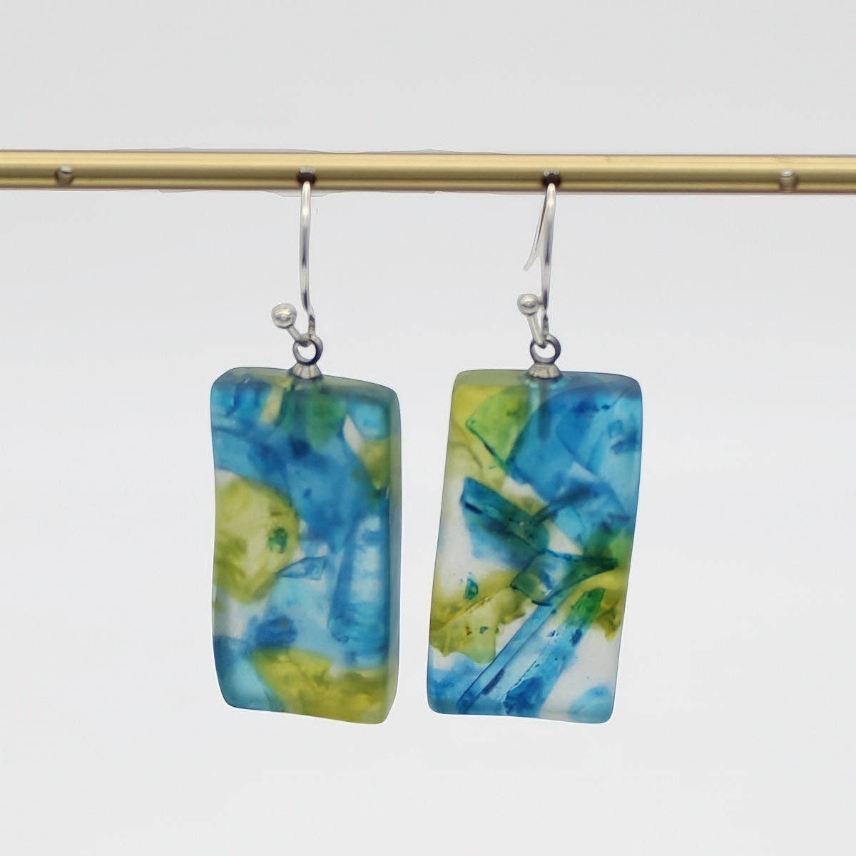 Blue Branches Artistic Rectangle Earrings