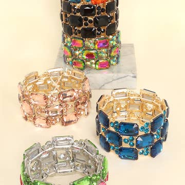 Brighten up your inventory with these stretch bracelets—where charm meets versatility! Perfect for stacking or wearing solo, these colorful enamel and stone bracelets are the ultimate accessory to add sparkle to any outfit. Details * Bracelet diameter: 2" * Painted enamel bracelet with rectangle stones * Stretch styling * Imported Whether it's a white elephant exchange, a stocking stuffer, a gift for one of the 8 nights or an accessory need for a Friendsgiving or NYE party, Taylor Elliott has what you need to make winter season celebrations memorable!