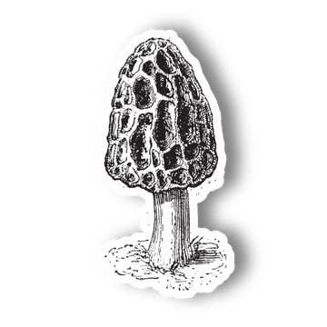 An illustration of a morel mushroom, created by Claire Loon Baldwin with watercolor and ink. Measures 1.5" x 3.5". Printed on a durable vinyl sticker, resistant to rain, UV, and scratching. It's even dishwasher safe! Don't forget to follow on Instagram: @claire.loon.baldwin