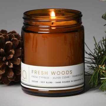 Made in United States Burn Time: 20-40 hours Fragrance Family: Spicy Handmade: Yes Material: Glass, tin Size: 8 oz, 4 oz Wax Type: Soy Wick Material: Cotton Weight: 425.24 g (15 oz) Dimensions: 8.9 x 6.4 x 8.9 cm (3.5 x 2.5 x 3.5 in)