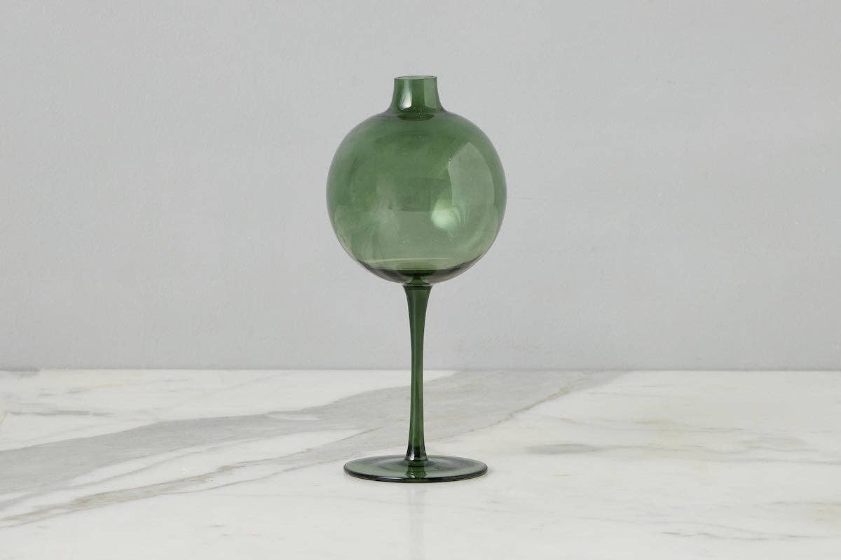 Graceful and understated, this tall lavender glass vase brings subtle charm to any setting. Its slender silhouette and soft purple hue make it a beautiful choice for long-stemmed florals or as a striking standalone piece. Perfect for tabletops, shelves, or windowsills, this vase adds a gentle pop of color and elegance to your home decor. 8" tall x 2.7" diameter