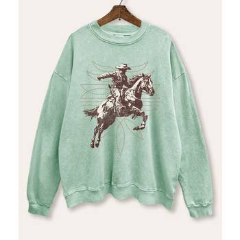 Graphic sweatshirt with an authentic vintage look and a softer feel that is only possible to achieve by using our special enzymes to dye and mineral wash processes. - Brushed fabric - Pre-shrunk - Washing Instructions: - Cold water preferably like colors - No bleach - Tumble dry low Graphic tee & top garment dye. Screen printed t-shirts SWEATSHIRT , SWEATSHIRTS, WESTERN, COWGIRL, SADDLE UP,