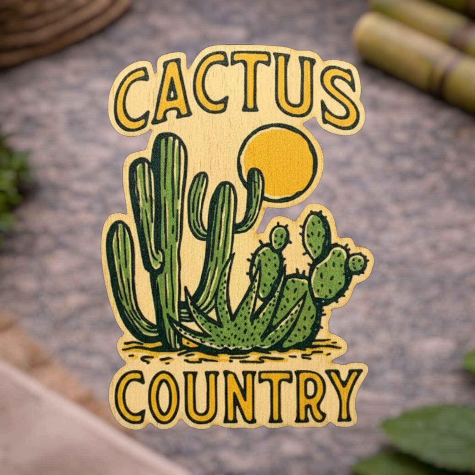 Our stickers are made with 100% Sustainable Bamboo. They are Eco-Friendly, Fade and Weather Resistant, backed with a 3M Water resistant adhesive, and approx. 3x3in. Due to the nature of the product, colors and appearance may vary.