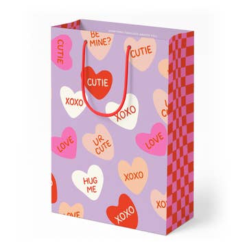 XOXO Inside Flap: XOXO Our best-selling Valentine's Day gift bag! This is the perfect bag for Valentine’s Day, Galentine’s Day, Love Day, or whatever term you want to use for that special day in the middle of February. Yes, it’s pink and red, but this gift bag would make a bag for any partner - serious, romantic, friendly… maybe even your children! The possibilities are endless. • Luxury gift bag printed with hand drawn XOXO and red and white confetti. • Top inside flap of bag reads: "XOXO". • Sides of bag contain white confetti pattern on red. • Large, versatile size: 13" tall x 9.6" wide x 4.5" deep, with 6" rope handles. • Digitally printed in Southern California on 200GSM sustainably sourced paper, using environmentally friendly inks. • Bags include protective scuff-proof matte lamination, gusseted sides, and metal eyelets for the handles. • Comes with premium red braided rope handles. • Extremely durable and can be re-used many times over.