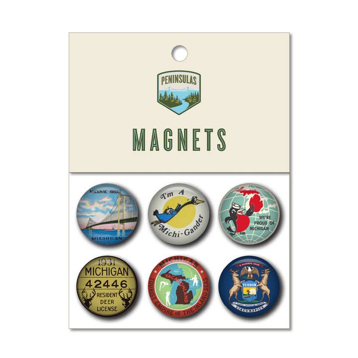 Small in size, packed with Michigan history—this array of 1" magnets features an assortment of all the designs pictured in the first image. Each pin celebrates the state’s rich heritage, from iconic landmarks to classic slogans and historic emblems. Available in two options: • 100-piece loose magnet assortment • 250-piece assortment with an eye-catching display box for grab-and-go appeal Whether your customers stick them on fridges, lockers, file cabinets, or toolboxes, these little magnets pack a punch. Fun to collect, easy to gift, and perfect for showing off a little mitten state love wherever there’s metal. Priced at just $0.70 - $0.88 per magnet, with a suggested retail of $2.00–$2.50, they’re a low-risk, high-reward win—especially when displayed near the checkout. Perfect for gift shops, museum stores, Michigan souvenir stands, and campus retailers looking for a tiny item with massive statewide appeal. Let your customers show their mitten love—one magnet at a time.