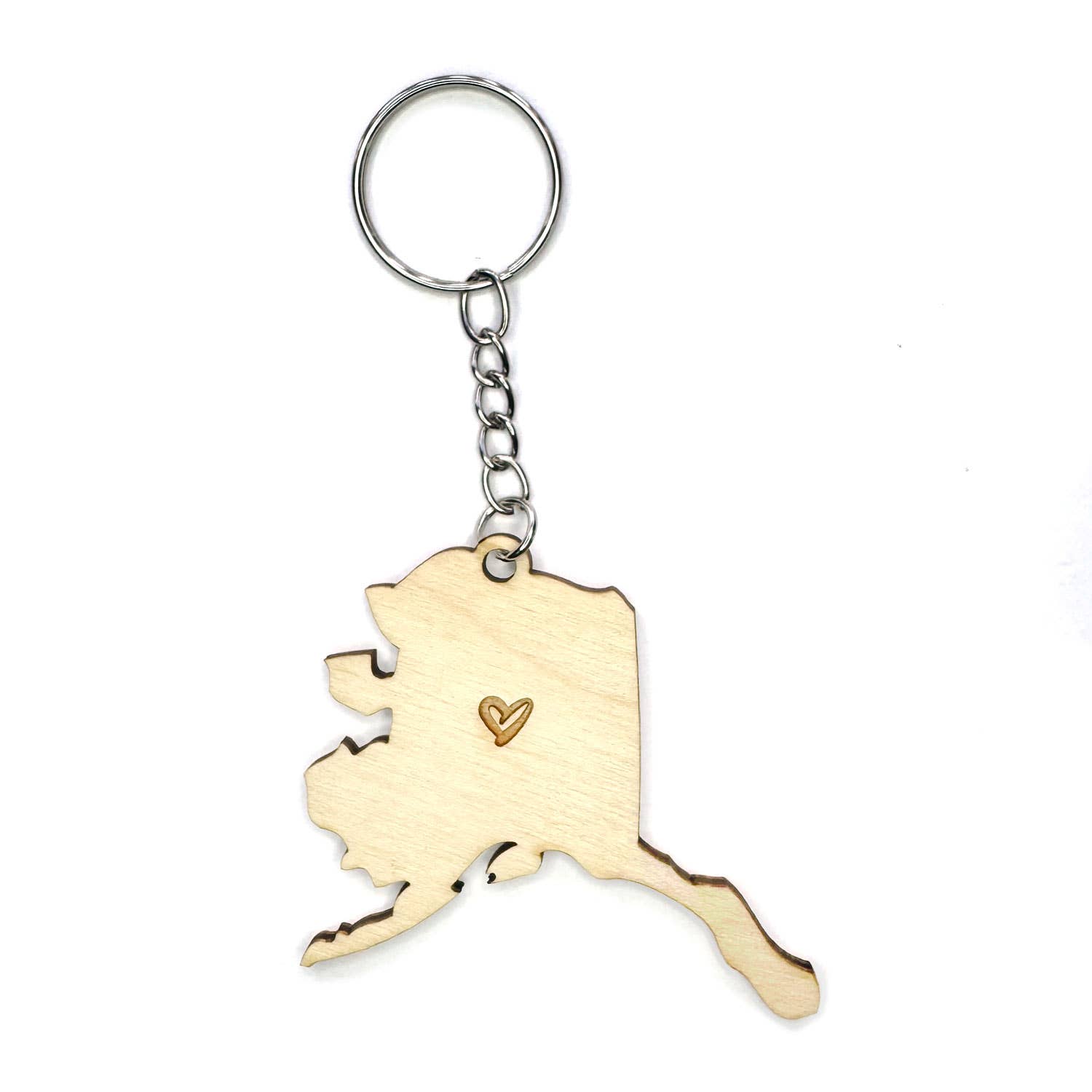 Spread the Maine love far and wide with a handcrafted keychain! Laser cut wooden keychain in the shape of Maine engraved with the words 'Someone in Maine Loves You' in our signature handwritten font. • Made of hand-painted 1/8" baltic birch plywood. • Available in our array of colors including Aqua, Red, Natural, Olive, Mustard, Light Pink, Sage, Purple and Teal. • Metal keyring attached with a 1" chain. • Keychain measures approximately 1.5" x 2.5". • Unpackaged