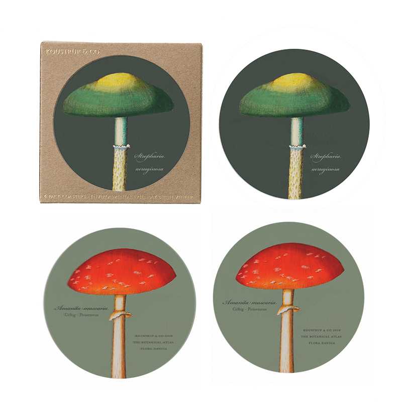 Coasters Mushroom 4 pieces, 2 sided made in Europe of wood.