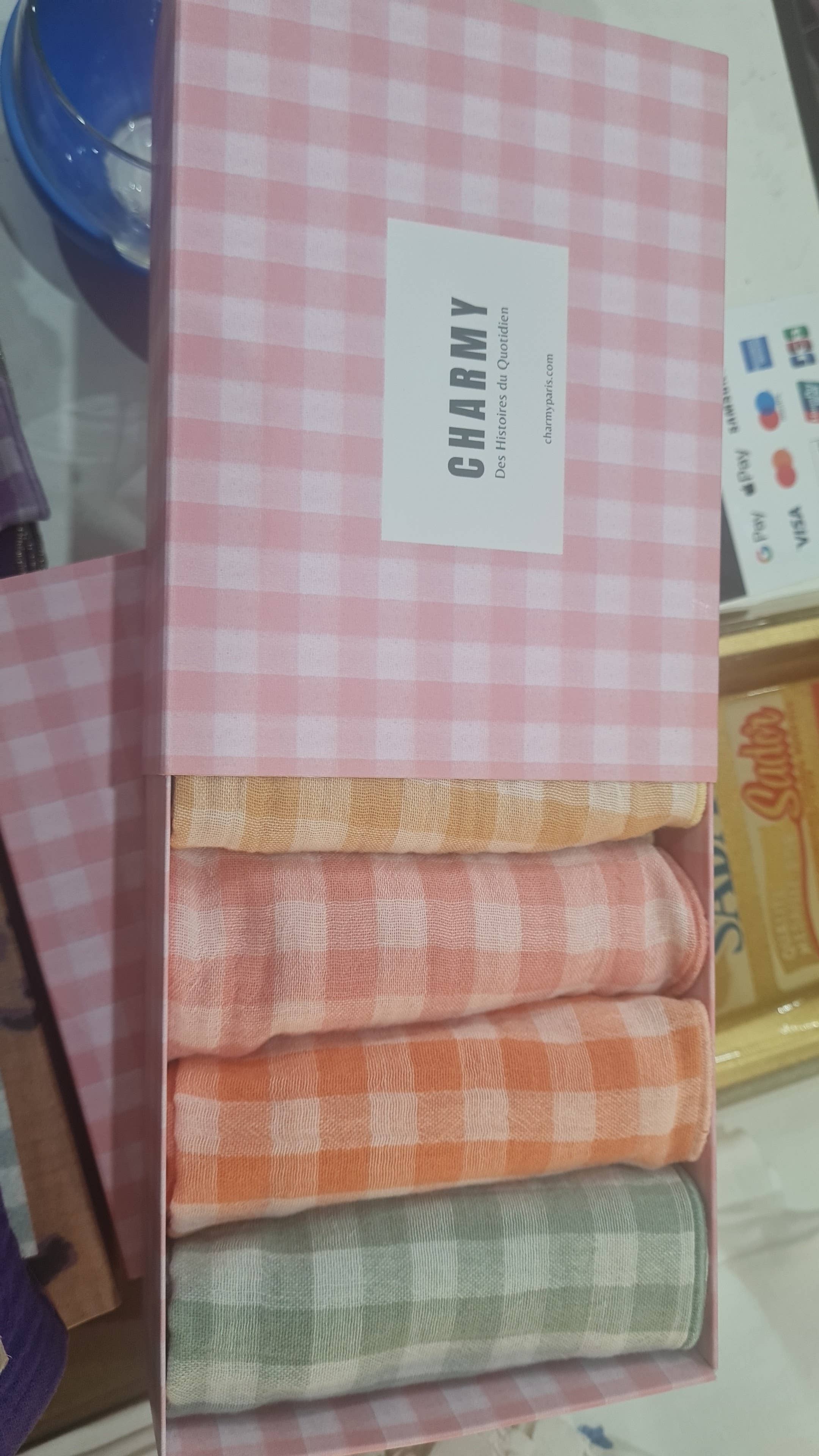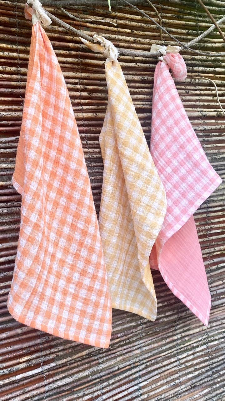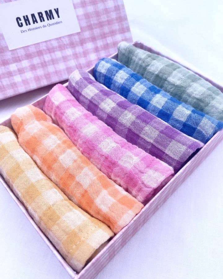 Set of 6 "Petite" Table Napkins 23x23 cm with Vichy Pattern Add a touch of retro charm to your table with our set of 6 "Petite" table napkins with a Vichy pattern. Carefully made in France, these quality napkins offer both style and practicality. Each set includes: * 2 Vichy check napkins in Barbapapa color * 2 Vichy check napkins in Vert de Gris color * 2 Vichy check napkins in Wheat color With a compact size of 23 cm x 23 cm, these napkins are ideal for accompanying your family or friends' meals. The Vichy check pattern brings a touch of both glamour and rustic charm to your table, while the vibrant colors add a fresh note to your decor. Each set of 6 napkins is made in France with 100% Oekotex cotton fabric, ensuring superior quality and environmental respect. The material used is cotton gauze, offering easy maintenance and an incomparable softness to the touch, without the need for ironing. Presented in a pretty printed case, these napkins are perfect for gifting or storing your napkins between meals. Add style to your daily meals with our set of 6 "Petite" table napkins with a Vichy pattern, made in France. Order now and transform every meal into a moment of conviviality.