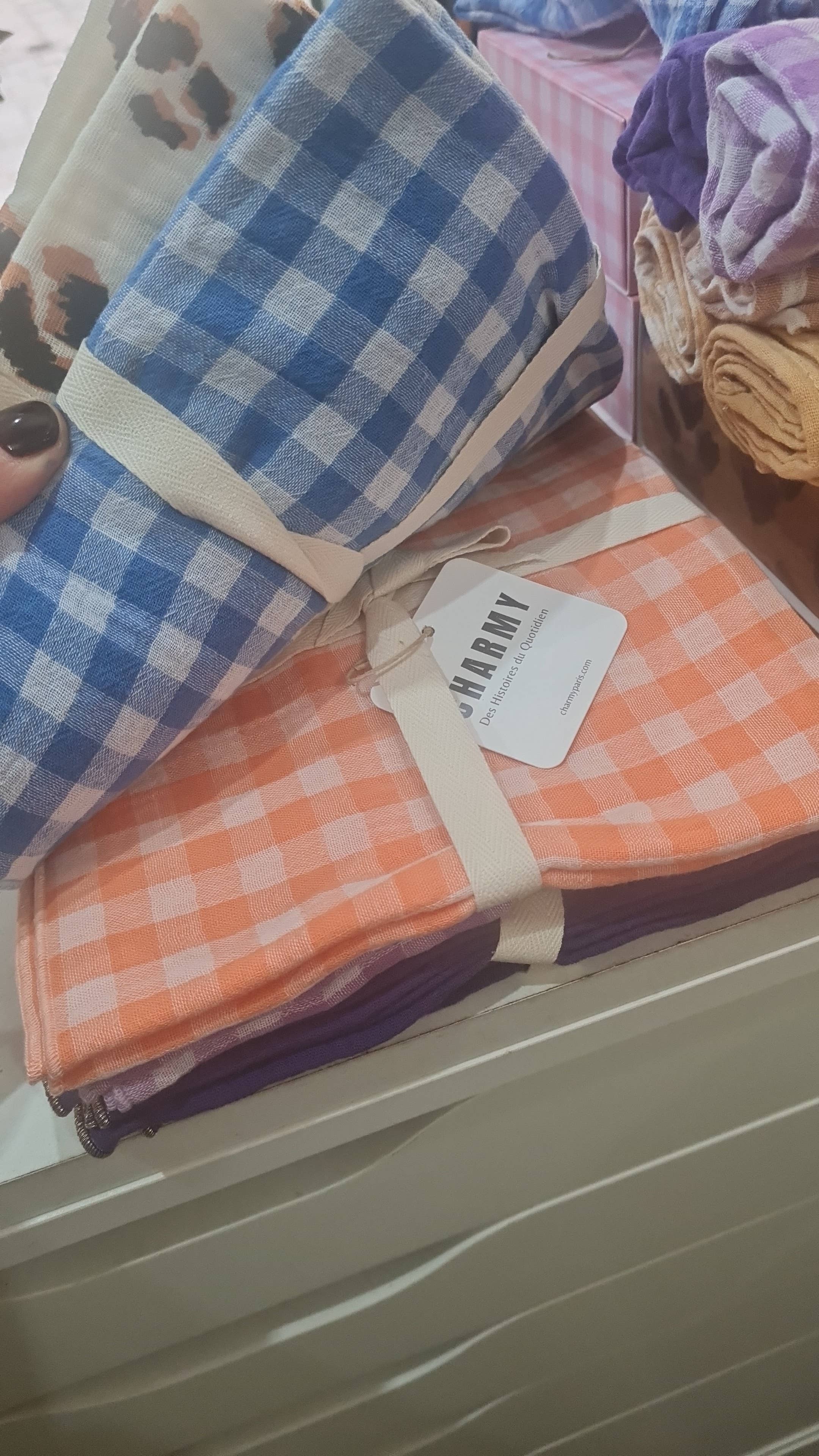 Wholesale Set of 6 pastel gingham fabric cocktail napkins made in France