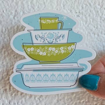A classic style needed to be added to your collection!! The Fire King ”Ivory" Tulip Milk Glass Mixing Bowls sticker/magnet is one piece you will want to add to your collection! 💪🏼 Durability: Stickers are weatherproof, waterproof, and able to withstand exposure to wind, rain and sunlight. They are resistant to fading, scratching, tearing, and water; and are even dishwasher safe! Made with high quality vinyl and adhesive, so your stickers stay strong and stay put! 📎 Size: 3 X 2.65 inches 🖋 Design: High quality matte sticker with a die cut design on high quality vinyl 📍 Production: Designed and produced in the USA, created with Apple Procreate on Ipad Pro 2020. Graphic design focuses on a bright, colorful and timeless retro/vintage style.