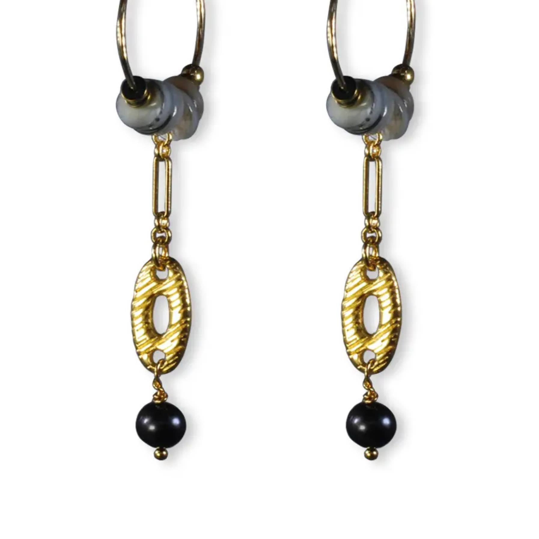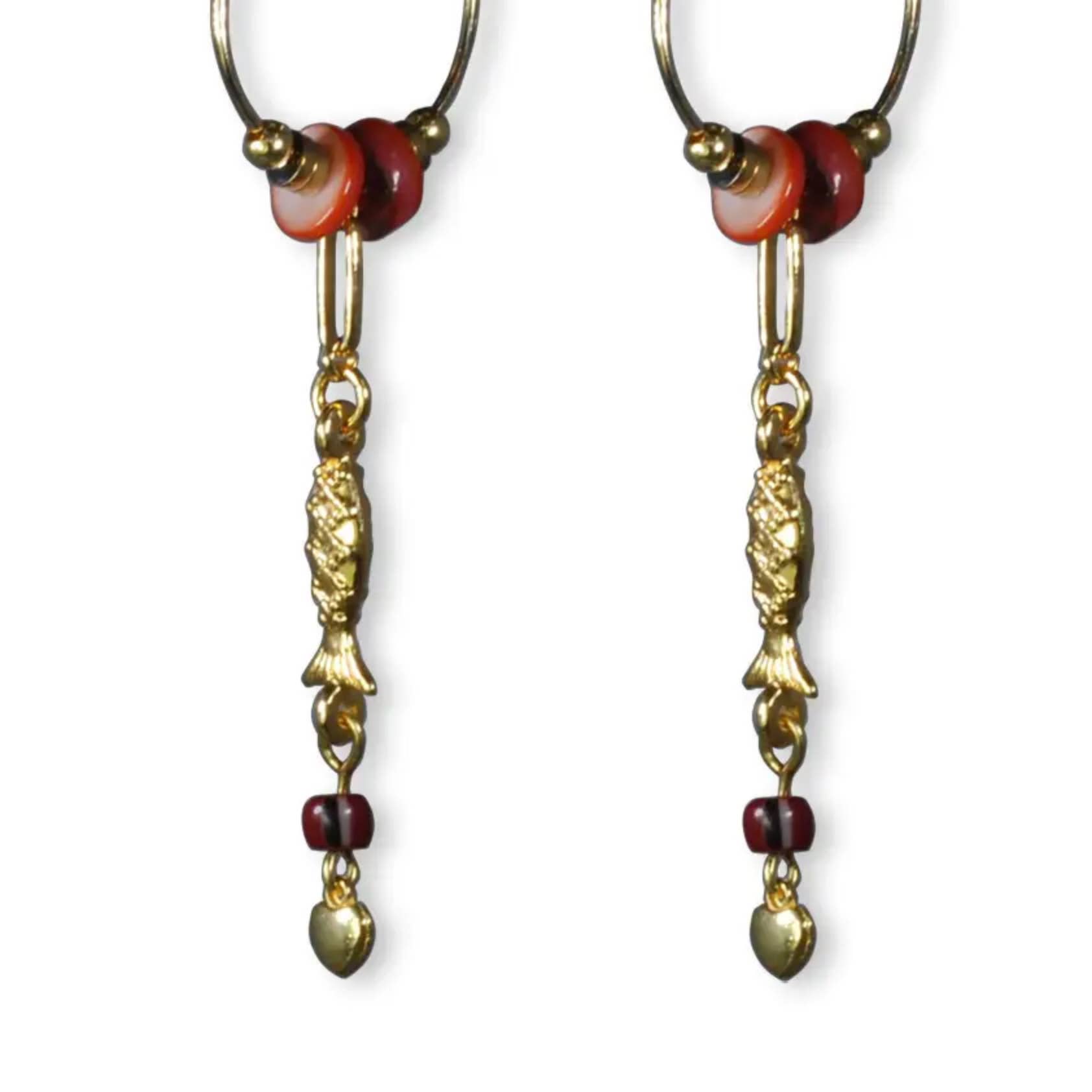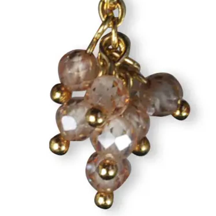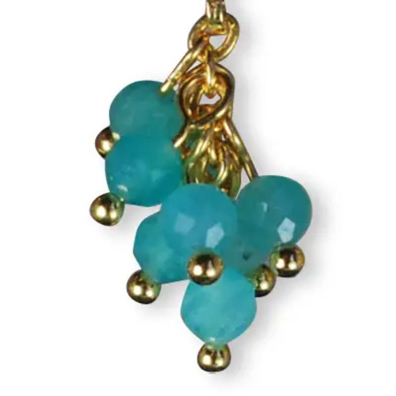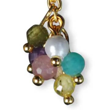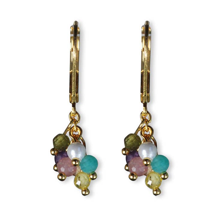These earrings have an elegant and refined appearance. They consist of gold-plated ear hooks. Faceted semi-precious beads and a gold charm hang from them. This combination makes these earrings a unique and stylish accessory, perfect for giving an outfit a colorful and chic touch. The earrings are approximately 50mm.