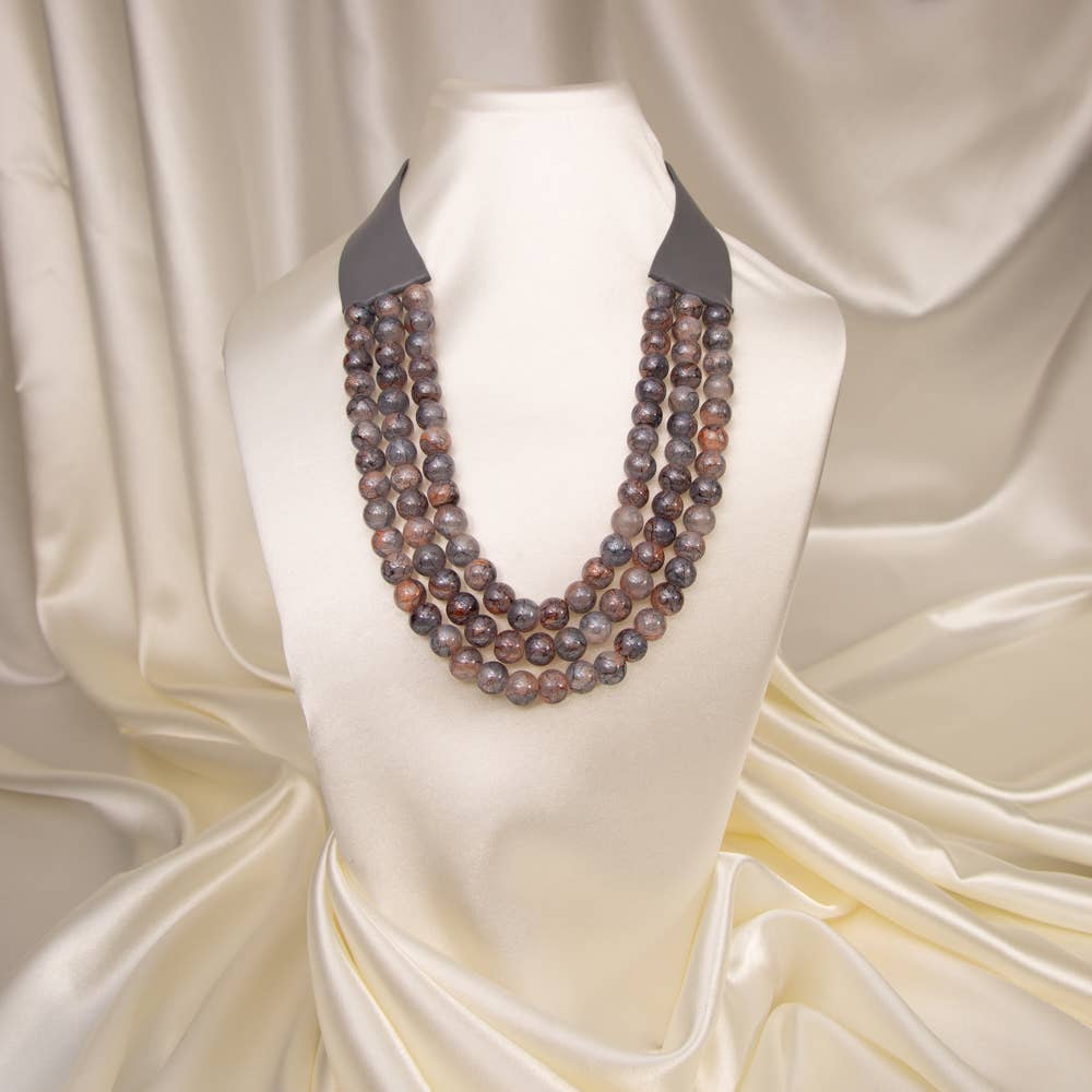 CHUNKY BEADED LAYERED NECKLACE Faux leather neck magnetic