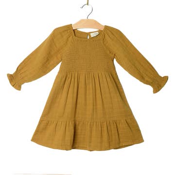 YMD10063TKV-KIDS PUFF LONG SLEEVE HACCI BRUSHED DRESS