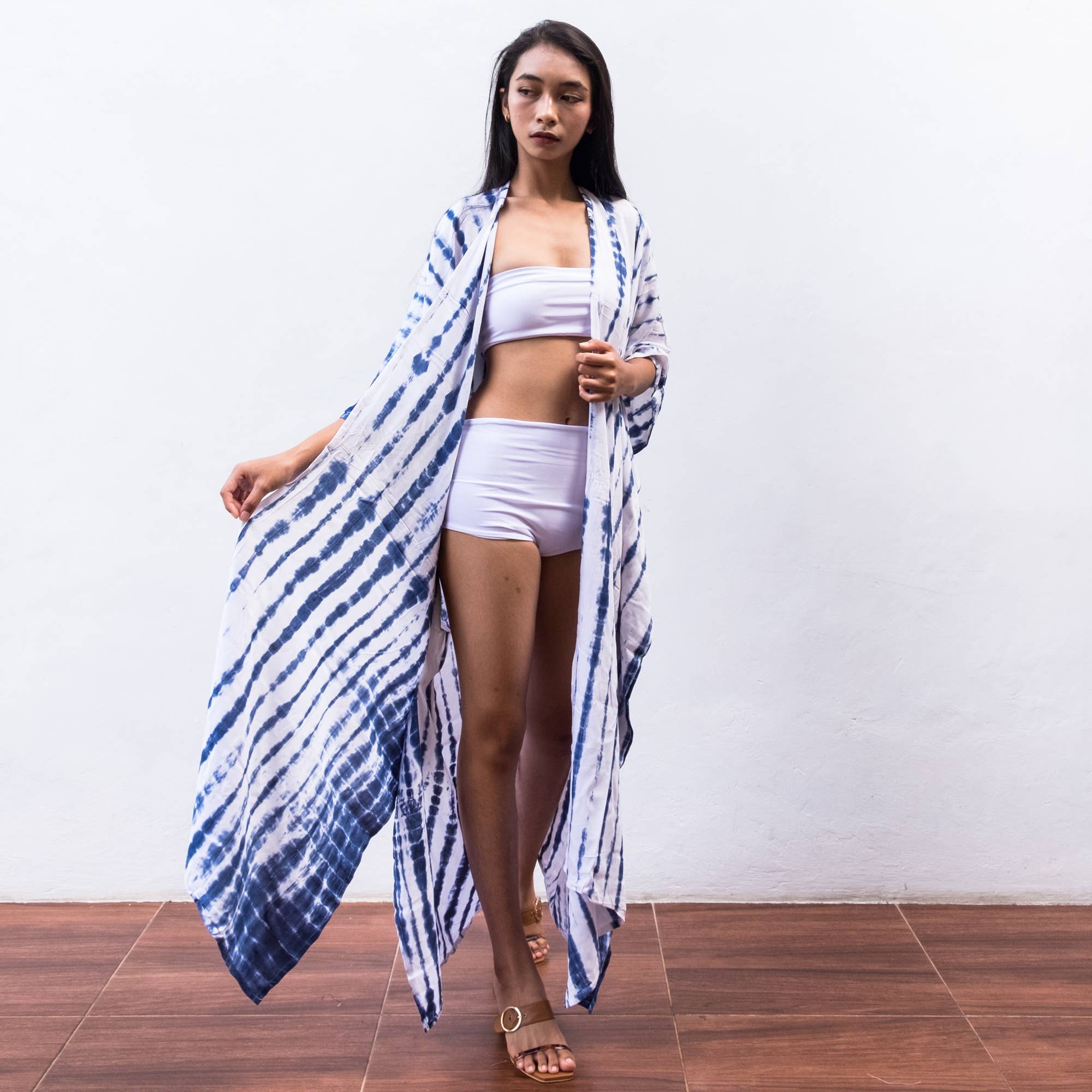 Our kimonos are tie dyed by hand and tailored individually with passion. Add style to your resort wear and lounge collection, give an extra touch of relaxed elegance inspired by peaceful island life. Perfect for bridesmaid gifts, poolside or beach party wear, beach cover up after a swim in the sea, or simply lounging at home. This stylish kimono can be worn from day to night, from beach to dinner. Bring tropical breeze to your holiday! One size fits all (approx. American size M - 2 XL) Width : 110 cm / 43 inch Length : 130 cm / 50 inch *Please allow 1-3 cm measuring deviation due to manual measurement Sideline opening Model height : 170 cm / 67 inch & heels : 5 cm / 2 inch Material : premium rayon *Fabric pattern & color may vary due to the making process by manual hand twisting ----- kimono robe cardigan sun dress kaftan summer holiday beach bikini cover up sarong resort hotel wear lounge bridesmaid gift tie dye shibori bali wedding bridesmaid rayon