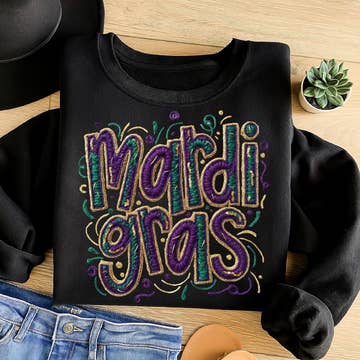 The "Mardi Gras Doodle Letters Tee" features a playful and artistic design with hand-drawn letters and elements that represent the vibrant and festive spirit of Mardi Gras. Doodle lettering can add a whimsical and creative touch to the tee, making it a unique and eye-catching choice for celebrating this lively event. Whether you're attending Mardi Gras parades and celebrations or just looking for a fashion statement that captures the fun and creative essence of the holiday, this tee is an excellent option. It's a stylish way to embrace the festive vibe of Mardi Gras and stand out in the crowd. ðŸŽðŸŽ¨ðŸ‘•