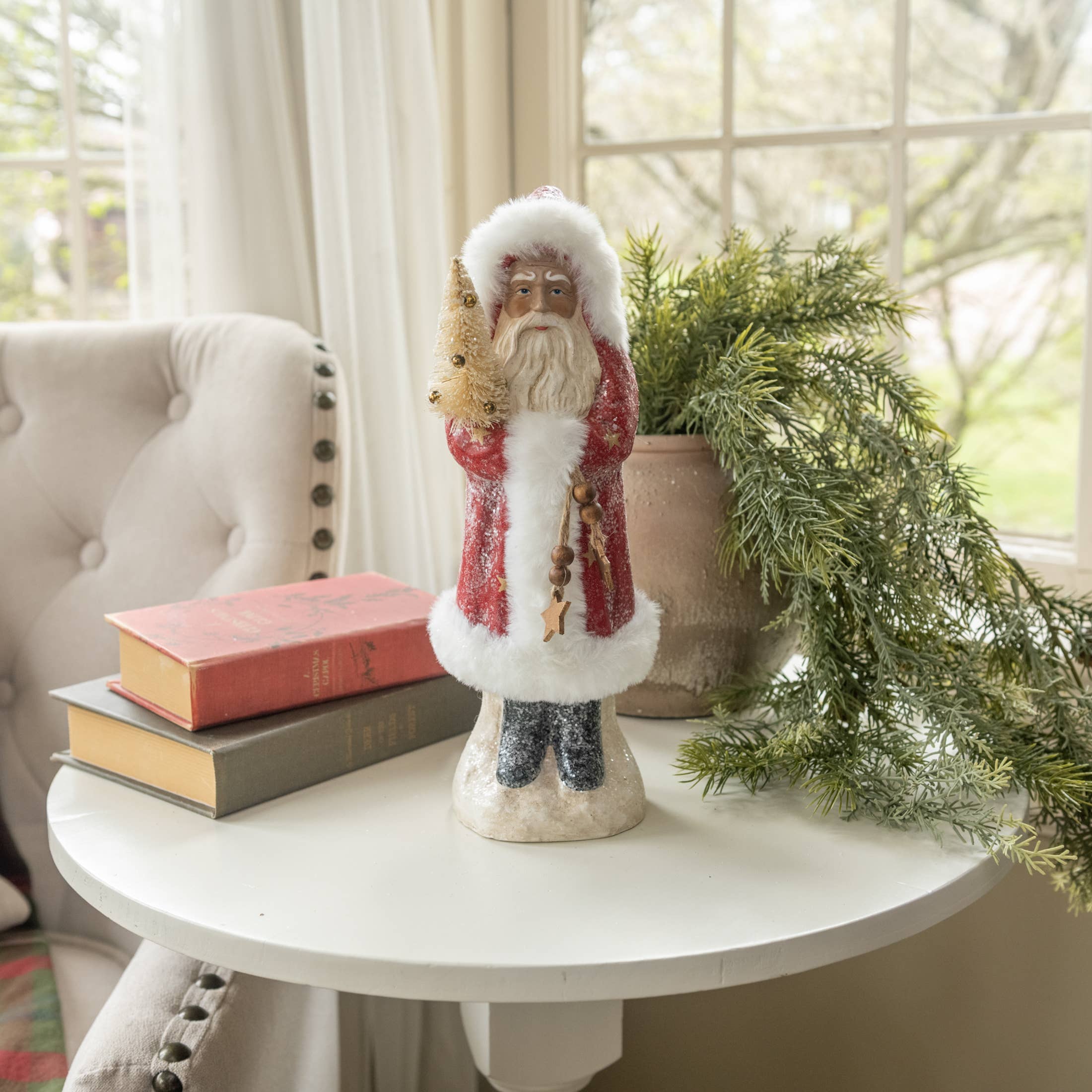 Add a touch of rustic charm to your holiday decor with these handmade fabric candy canes! These 10-inch candy canes are crafted with high-quality ticking fabric, making them a perfect addition to your farmhouse or vintage-themed Christmas decorations. They measure approximately 5 inches in width and have a burlap backing.