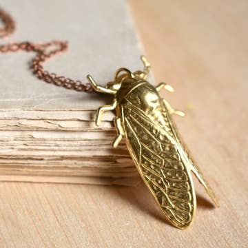 One copper electroformed Carved Labradorite Dark Lyric Cicada on a 22" soldered copper chain. Neotibicen lyricen engelhardti aka Dark Lyric Cicada. These Appalachian dwellers have captured the imaginations of people around the world for centuries. One of the reasons for this is its unique song, which is beautiful and otherworldly. The sound of thousands of cicadas singing at once is truly awe-inspiring and has inspired countless artists, poets, and musicians over the years. Labradorite is known for its play of beautiful and lustrous colors like those of the Northern Lights. Named after a region in Labrador, Canada, where it was discovered in 1770. Labradorite is said to banish fears, insecurities and also the psychic debris from previous disappointments, including those experienced in past lives. Cicadas measure approximately 2.25” x 0.75". Size, shape, and color may vary as no two stones and carvings are alike.