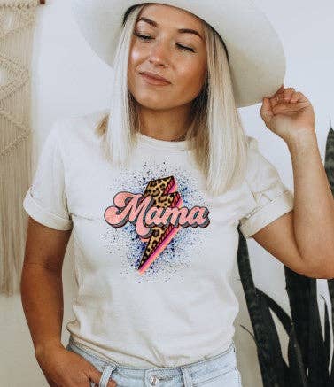 Experience the comfort and style of our Mama / Lightning bolt t-shirt from Highland Cactus. This printed tee is not only a testament to your strength as a mother but also a chic addition to your wardrobe. Enjoy a high-quality tee, made with love.